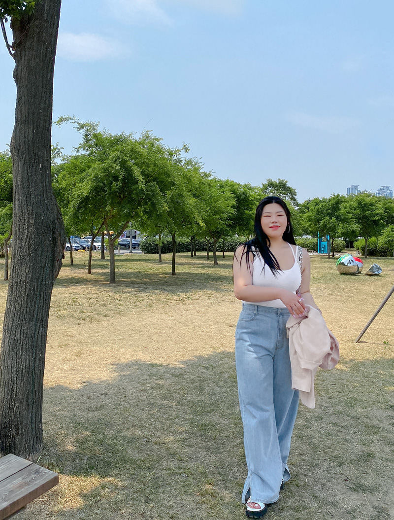 사지통통형으로 팔,다리가 통통하며 허리가 얇은 체형입니다.Hourglass body shape & Relatively plump arms and legs