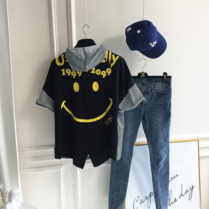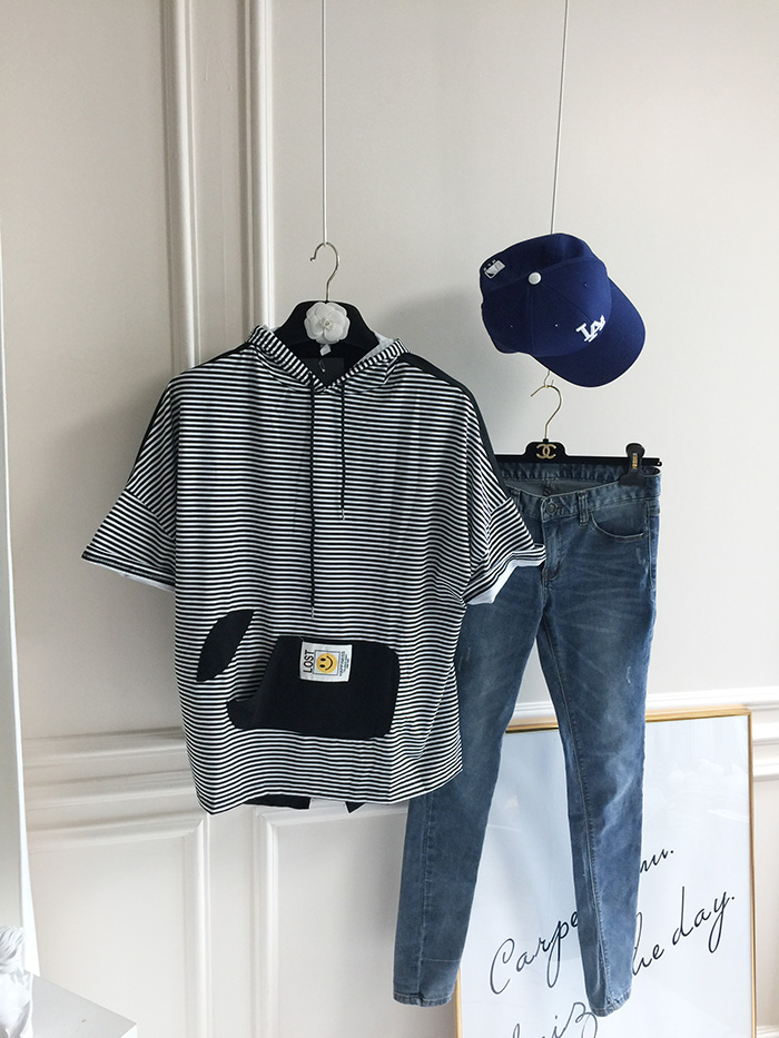 국내상품 / 해피해피 오버핏 후드 롱 티셔츠