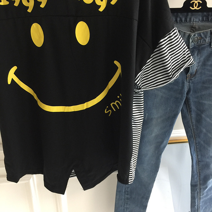 Domestic / Happy Happy Overfit Hooded Long T-shirt