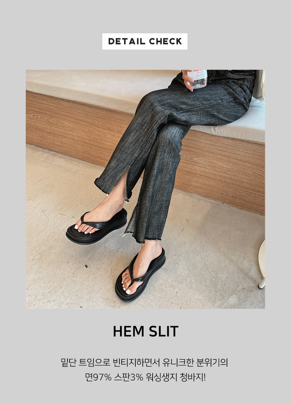 사이드의 슬릿트임을 더해주어 걸을때 마다