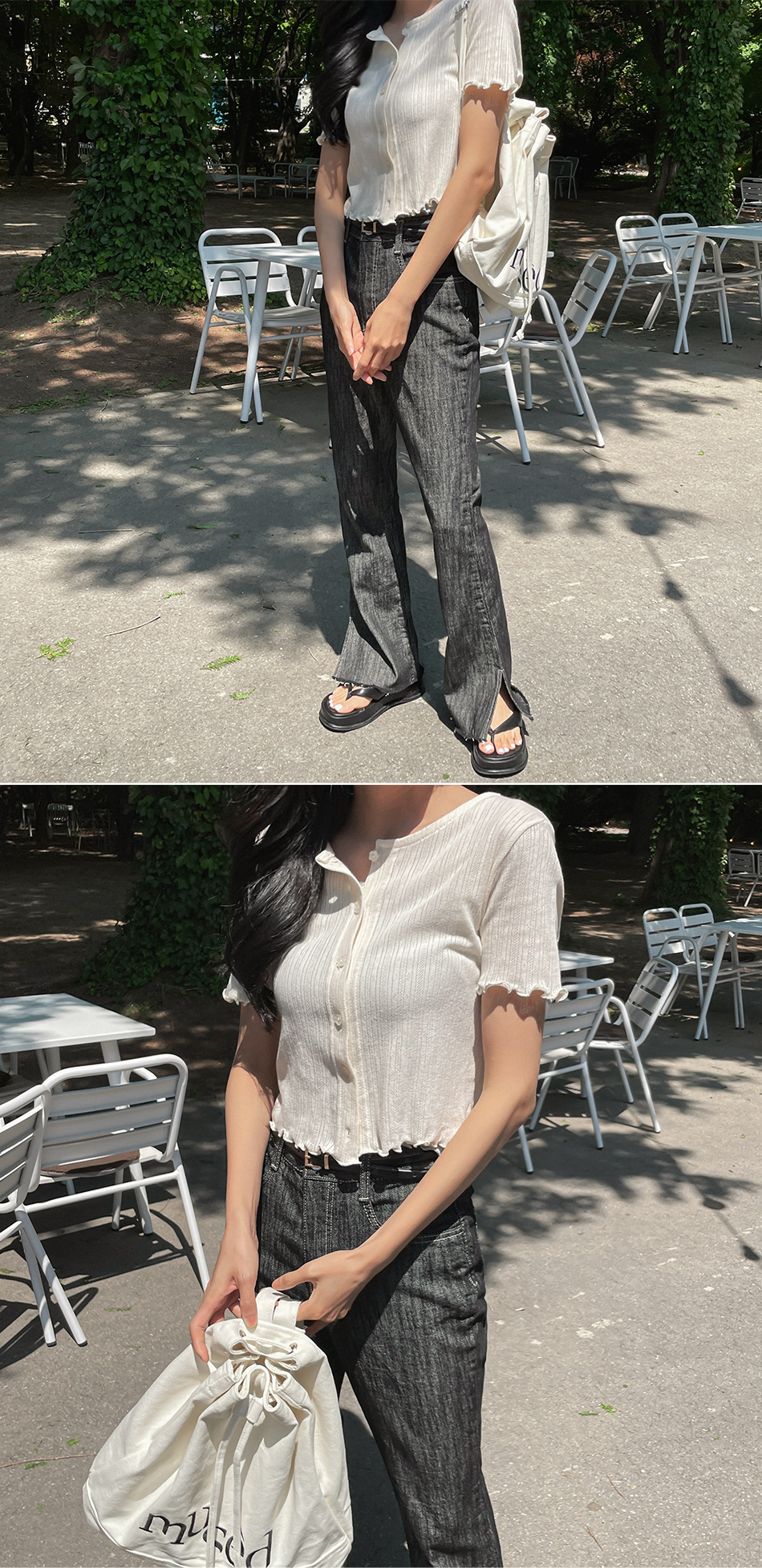 Weir banding slit jeans_S,M,L-2color,unique mood-thin and fluffy summer jeans♥ - Style Tiva