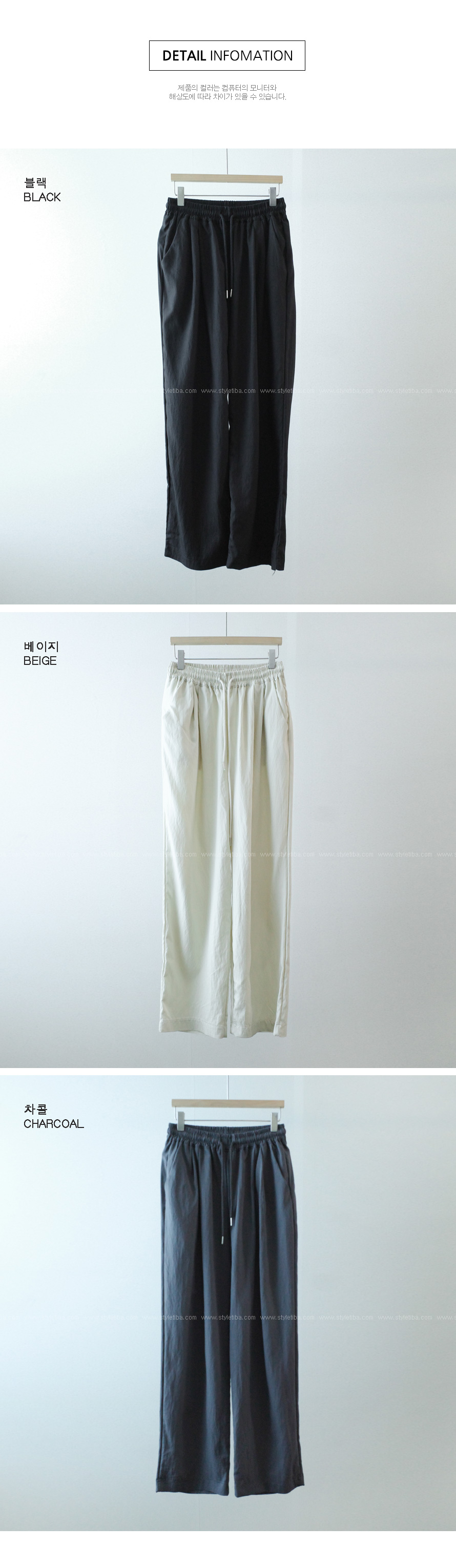 레타 밴딩 와이드팬츠_F(44~66)-3color, 바스락바스락 소프트-허리밴딩+스트링 2중으로! - 스타일티바