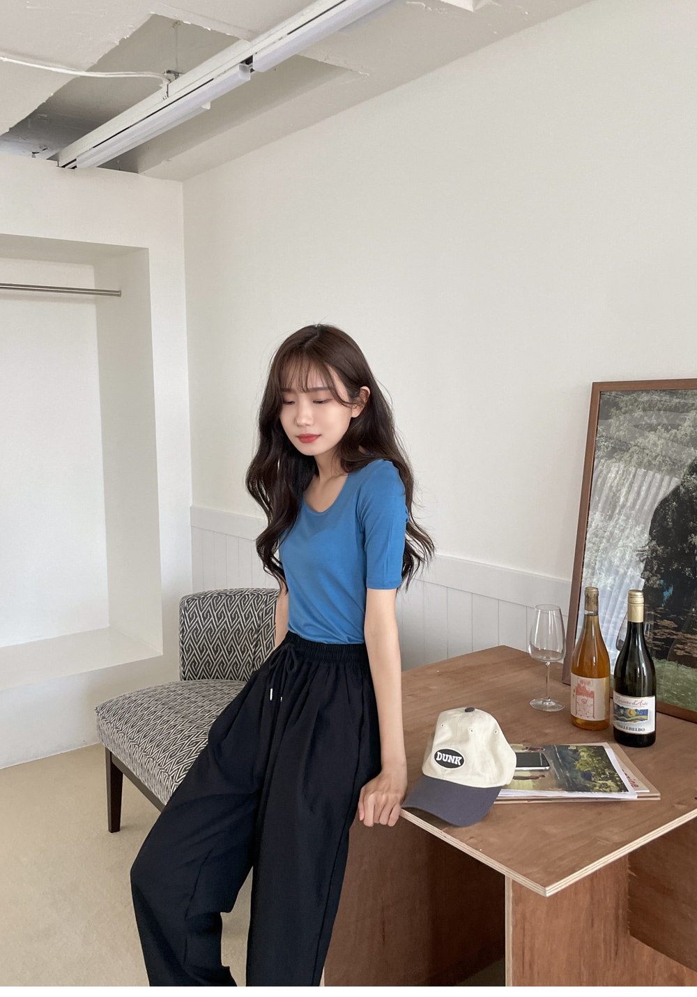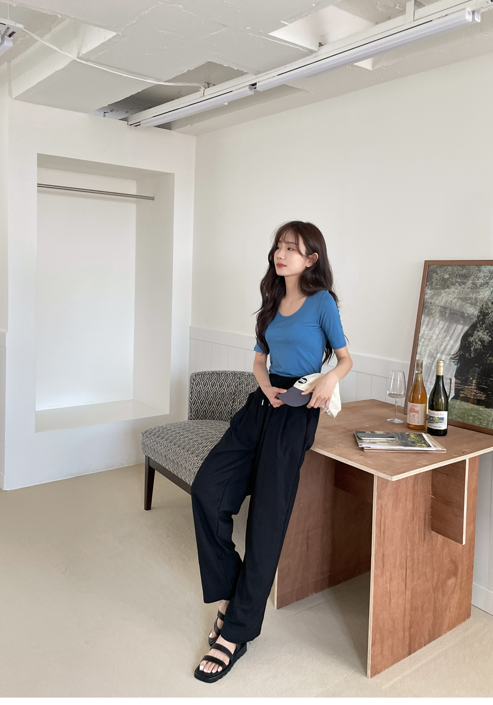 Crunch U-Neck Span T-Shirt - 5color, Yeori Yeori U-Neck T-shirt - ok for any look - Universal Item - Style T-Bar