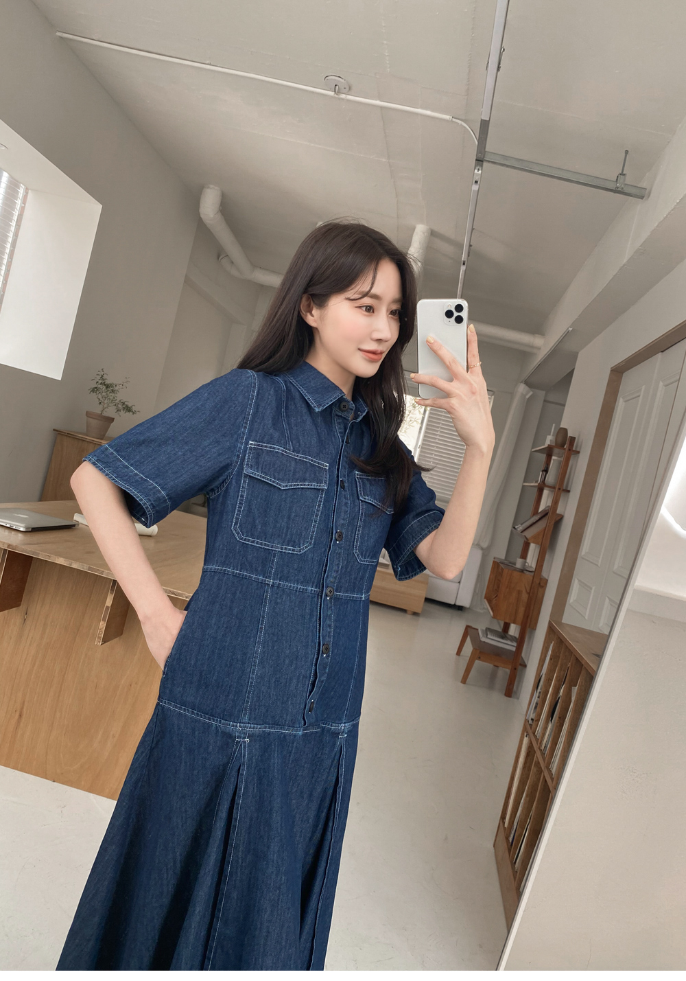 데님매력♥ 멋진분위기의 데님 롱원피스