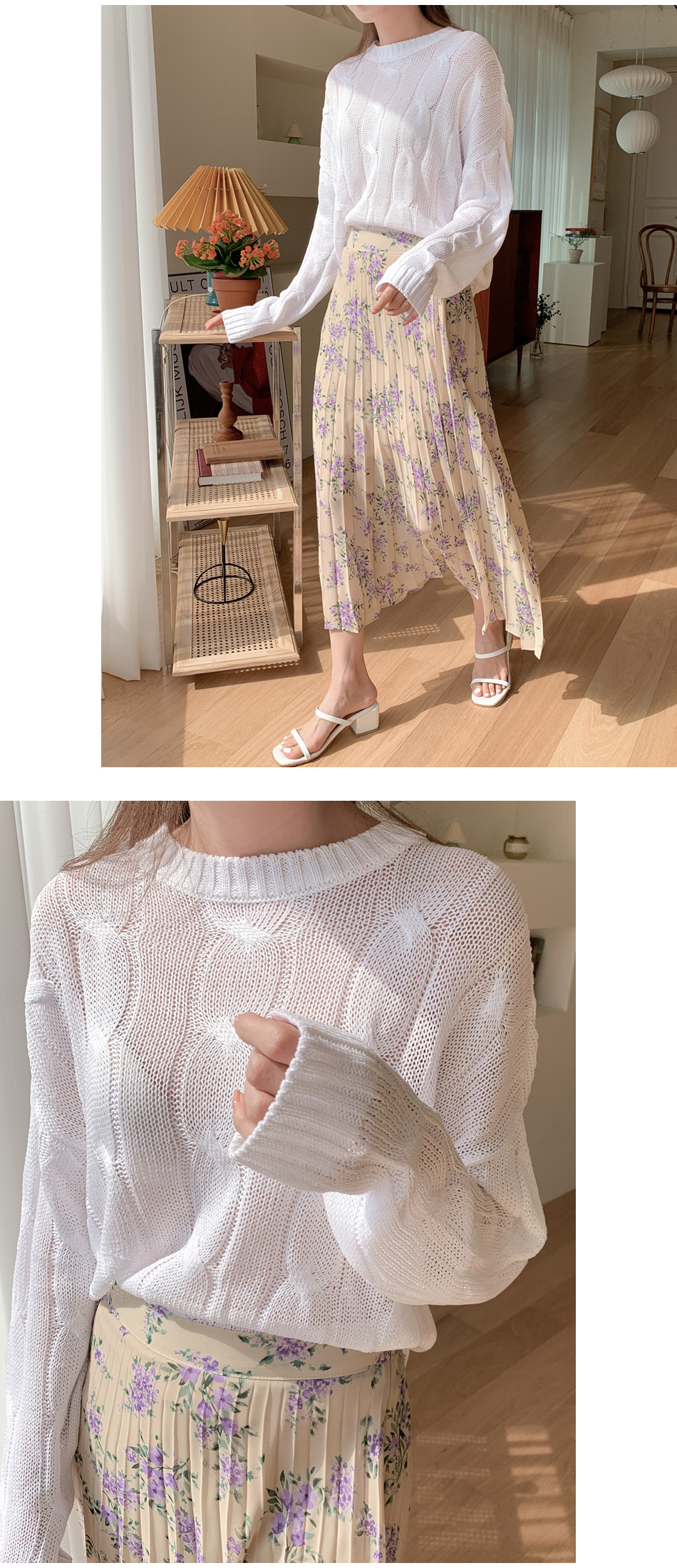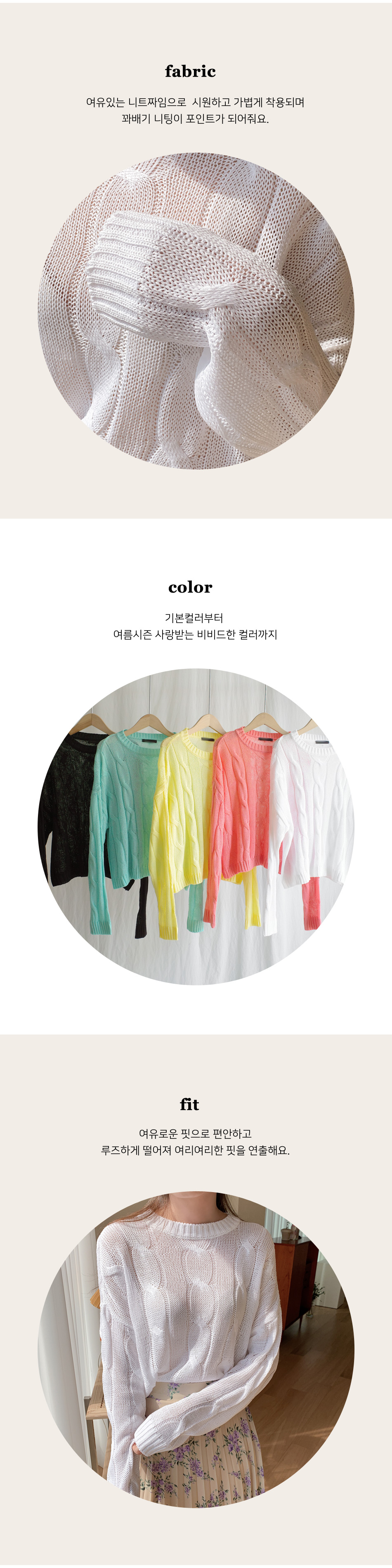 여름 니트로 꽈배기 니팅이 포인트이며,