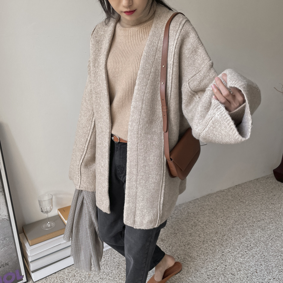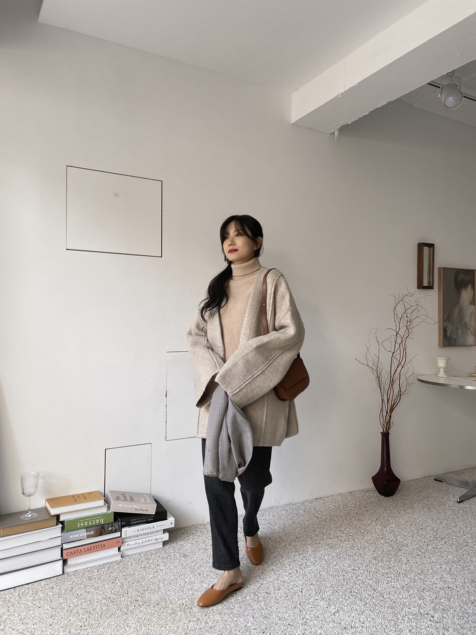 Renk Wool Shawl Cardigan - 2color, 40% wool, thick warm wool knit-tuk! Shawl with a mood just by putting it on - Best progression, shawl knit cardigan - Style Tiva