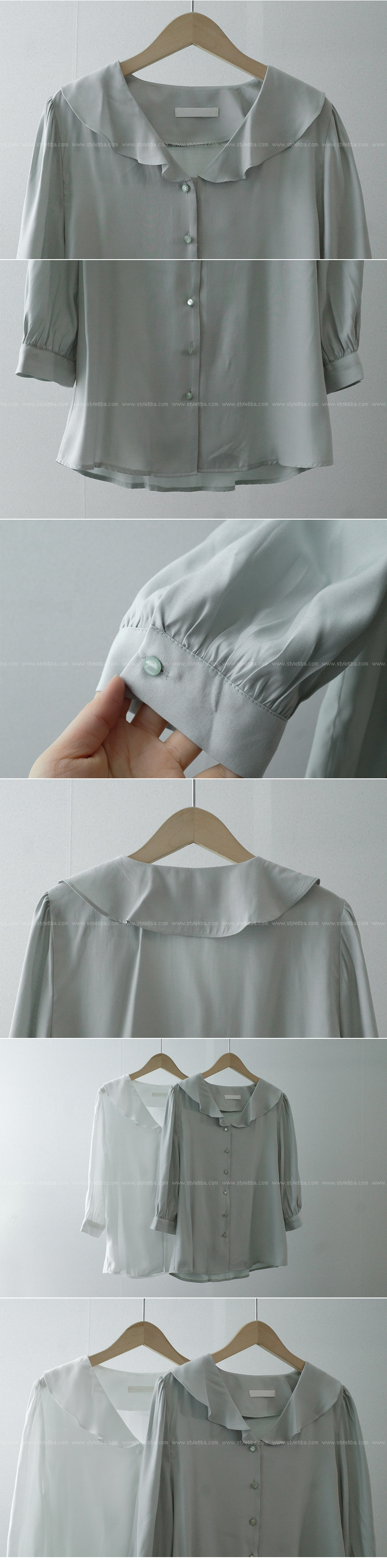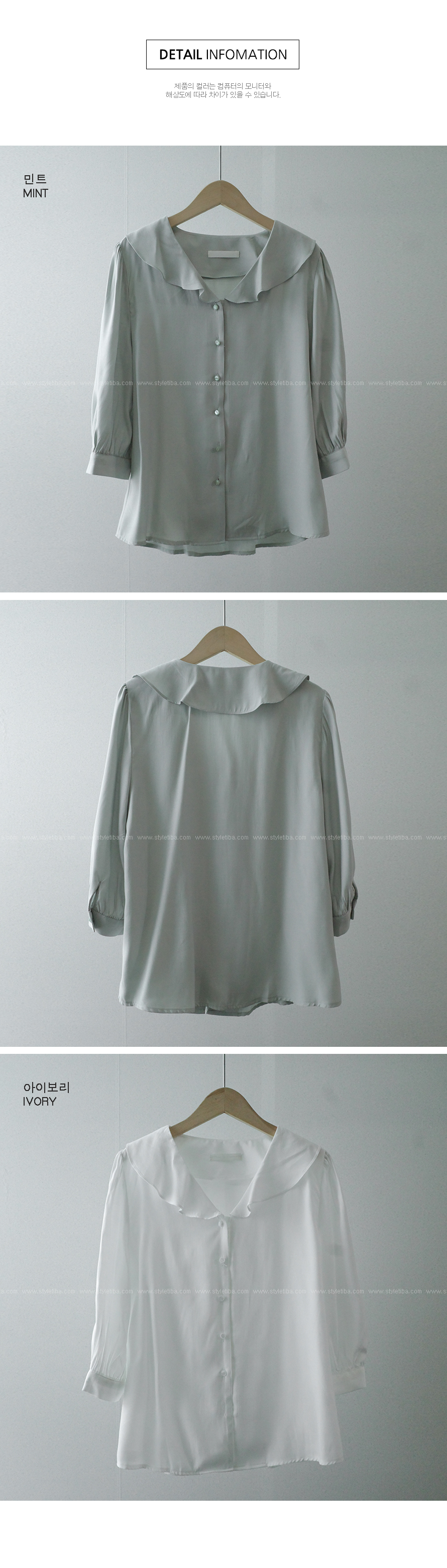 프릴카라 7부블라우스-2color, 프릴카라로 러블리감성-7부소재 산뜻 입는 블라우스 - 스타일티바