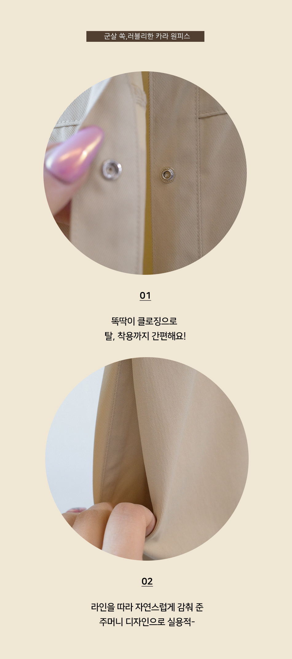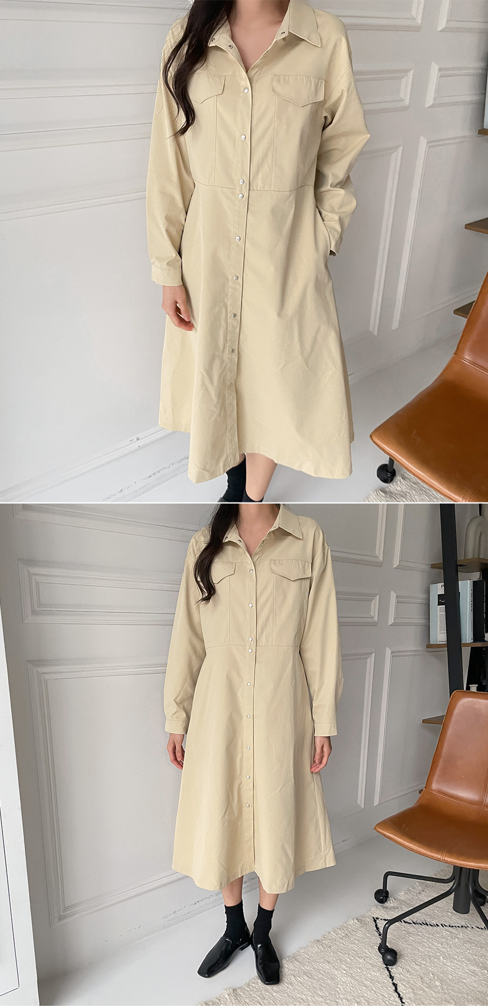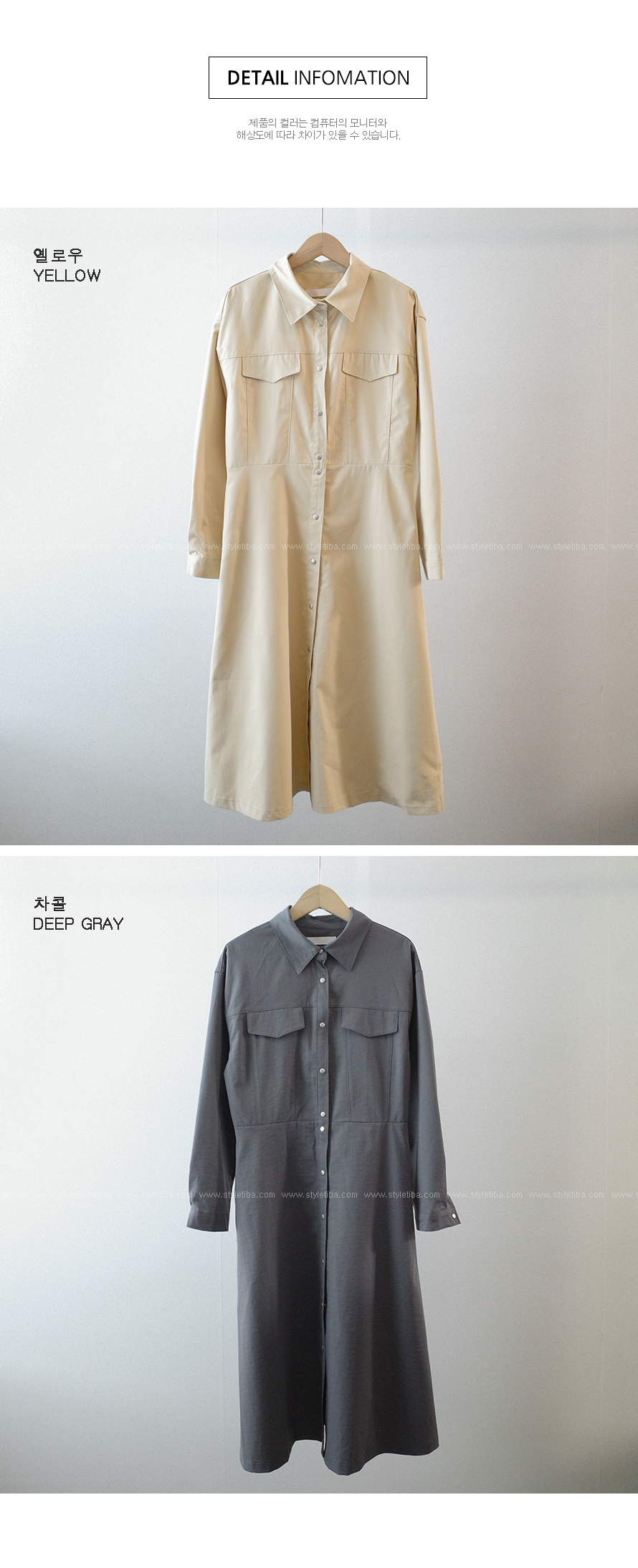 로밍 포켓 카라원피스-2color, 탱글한 텍스쳐의 터치감-똑딱이버튼, 차분한 롱원피스 - 스타일티바