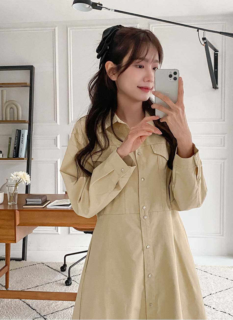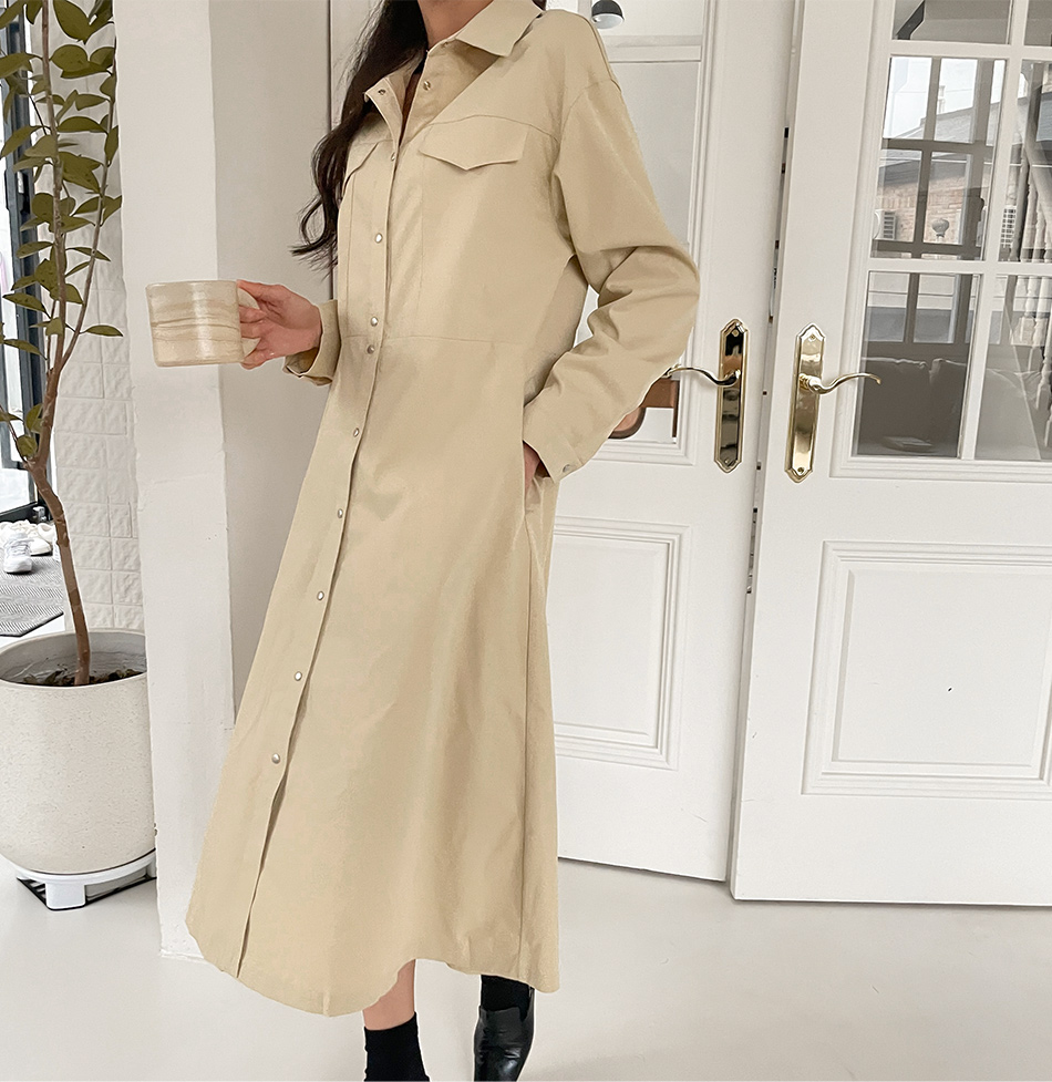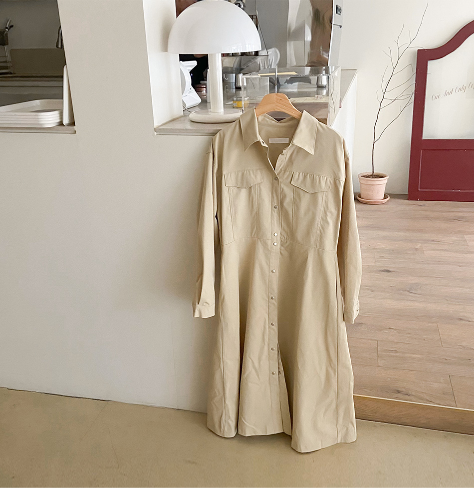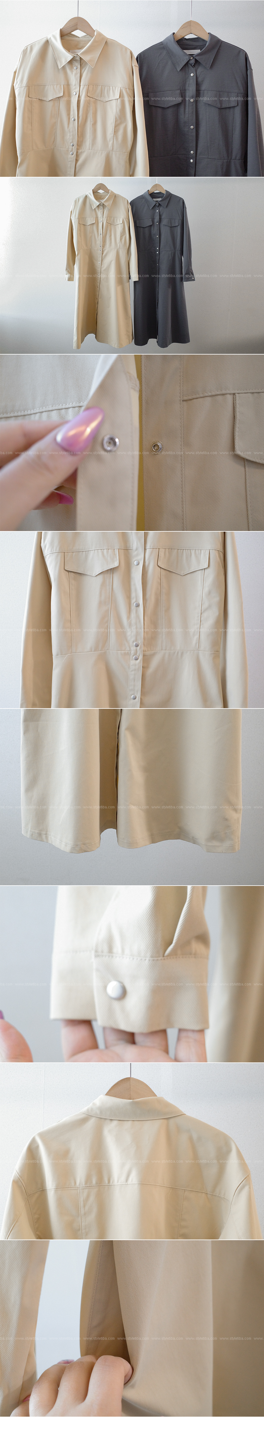로밍 포켓 카라원피스-2color, 탱글한 텍스쳐의 터치감-똑딱이버튼, 차분한 롱원피스 - 스타일티바