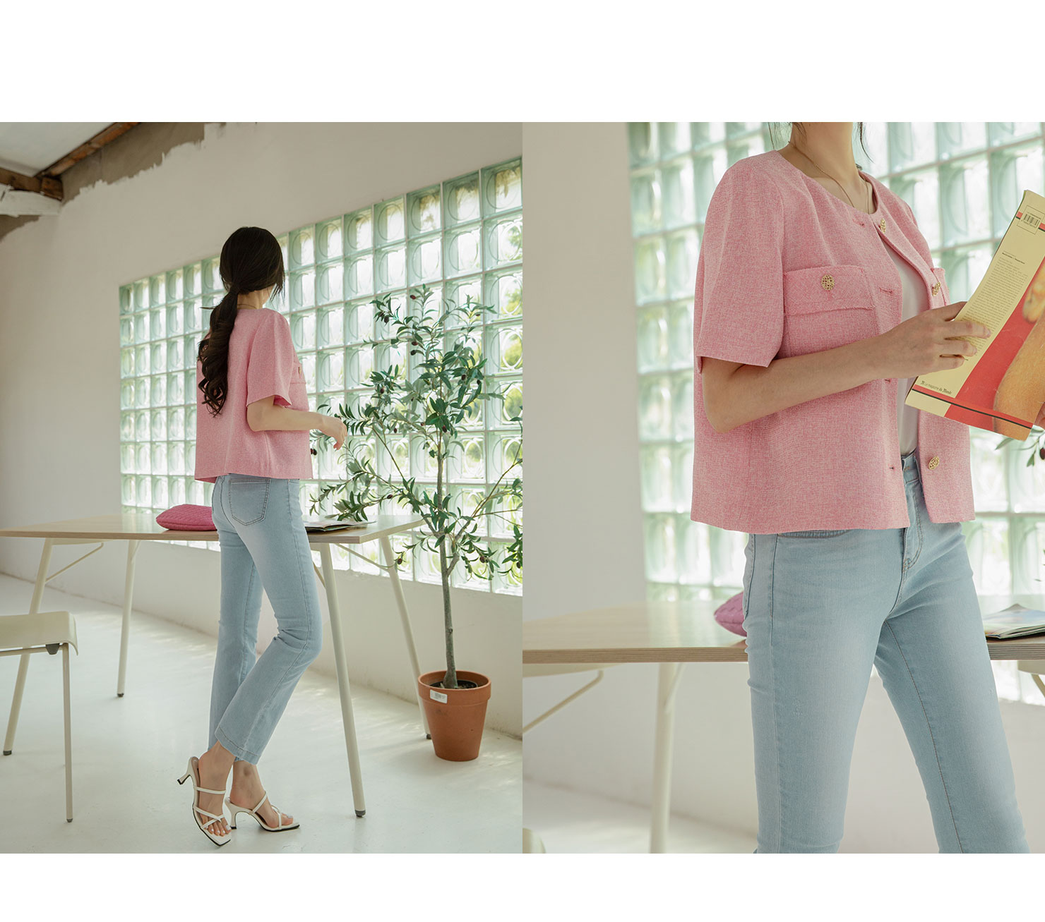 주는 루시나트위드반팔자켓을