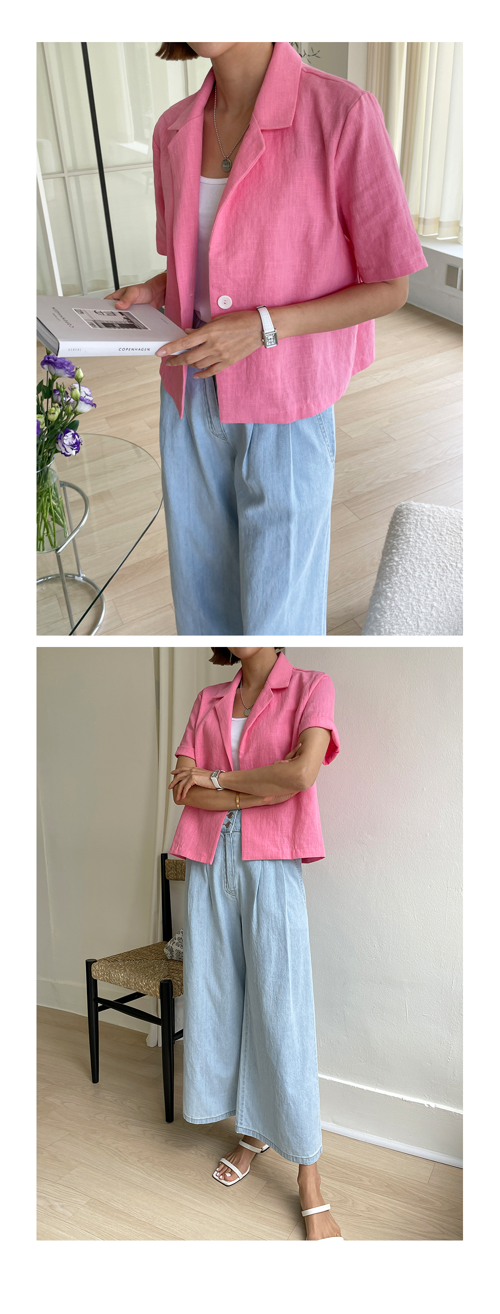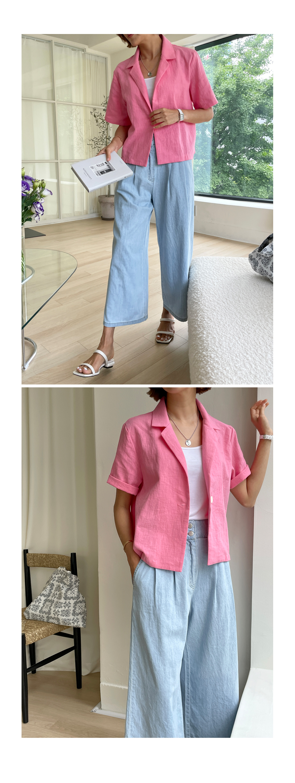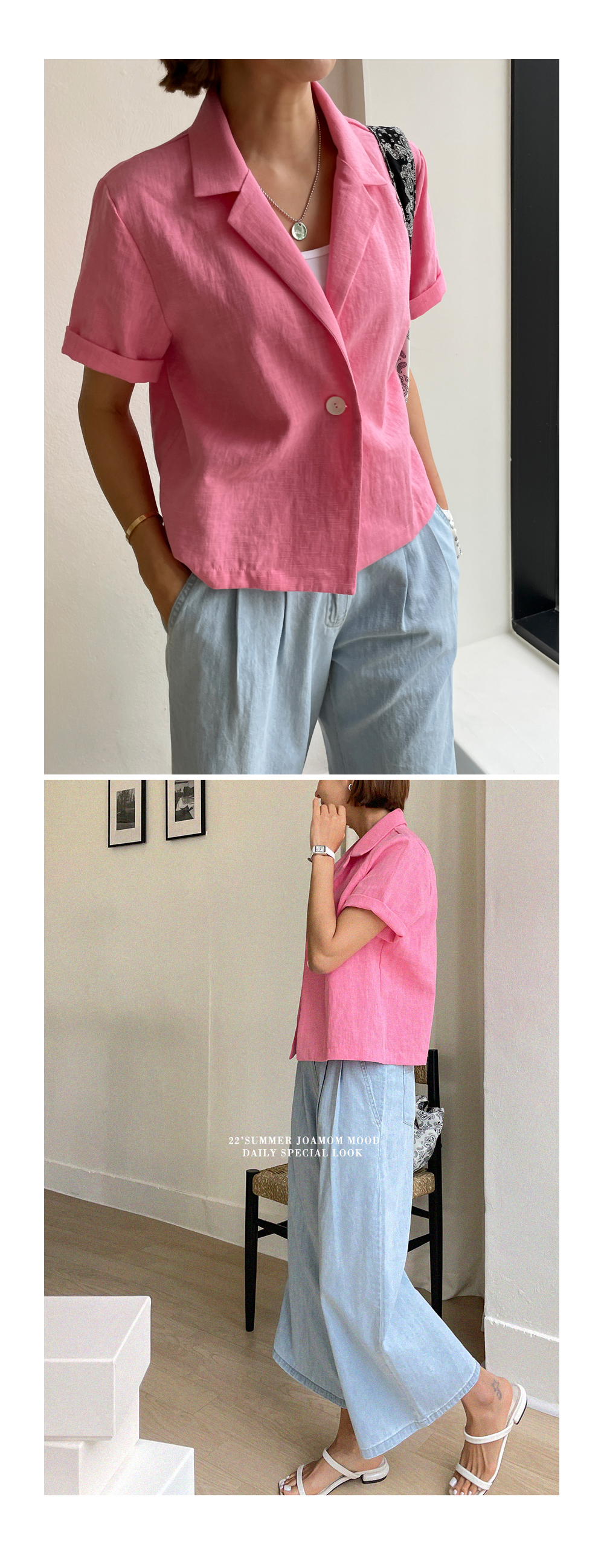 경쾌한 크롭 길이감의 여름 자켓 소개해드려요~