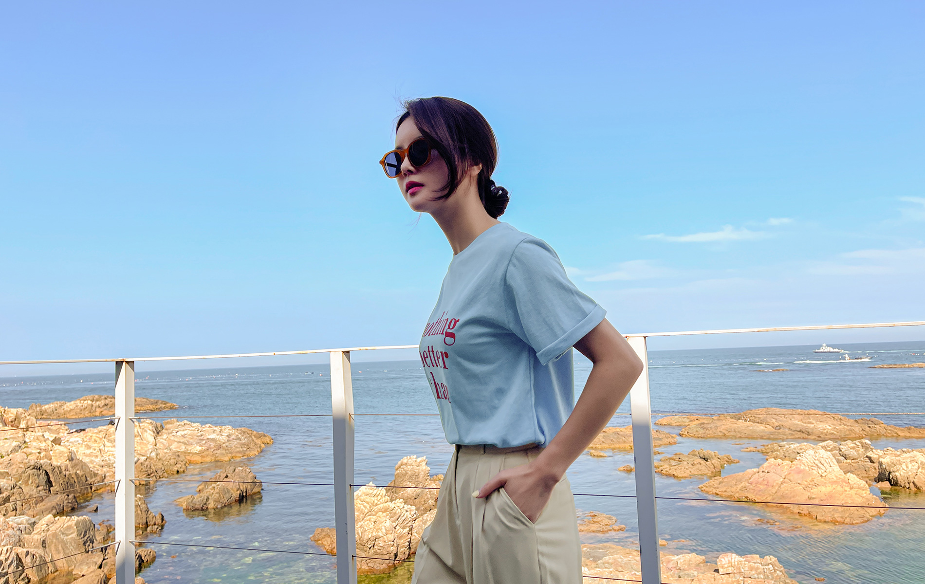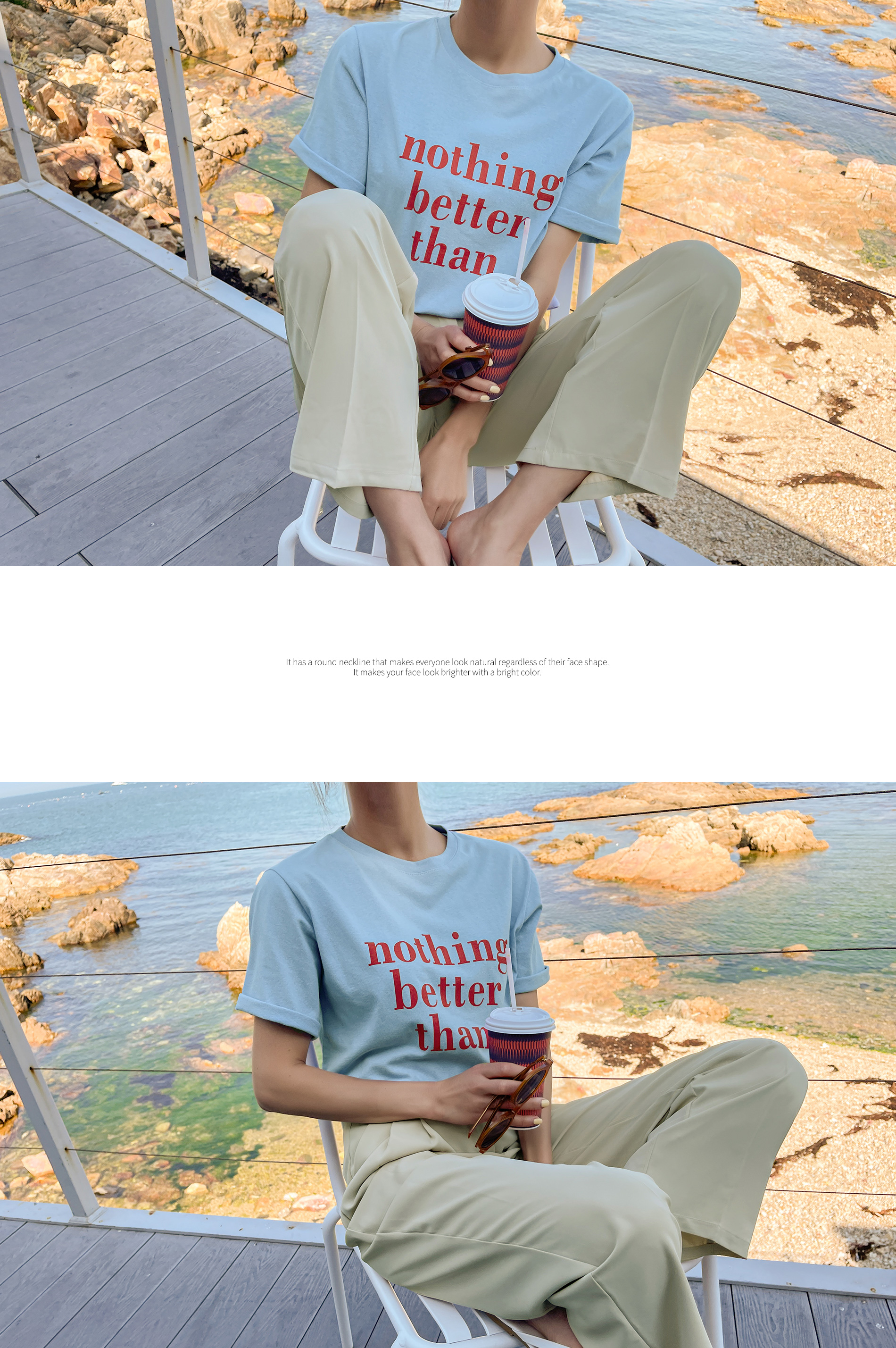 2. 라운드 네크라인으로 얼굴형에 구애 없는 자연스러운 핏