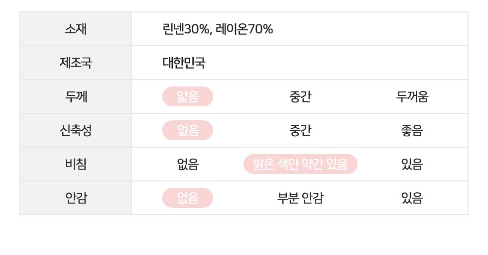 린넨 레이온 혼방 소재로 제작되어