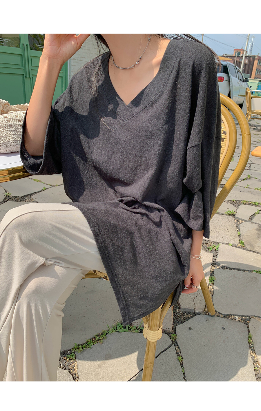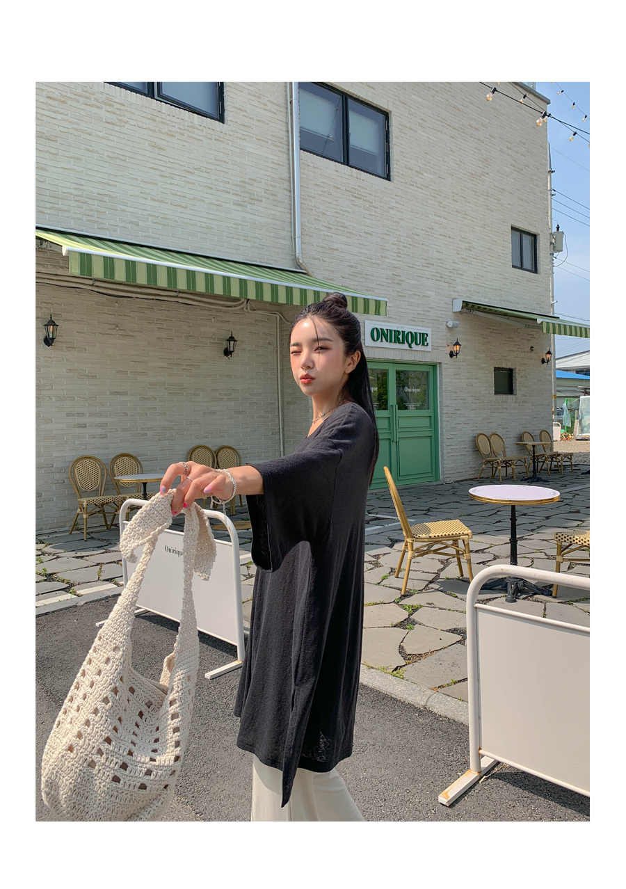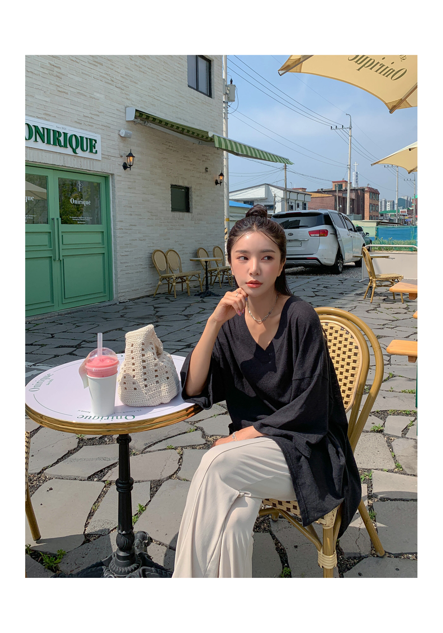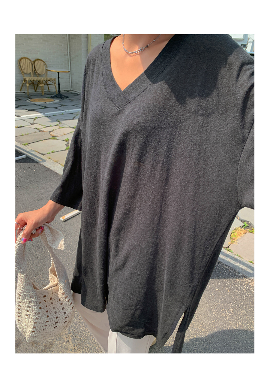 Mirang V neck long short sleeve tee