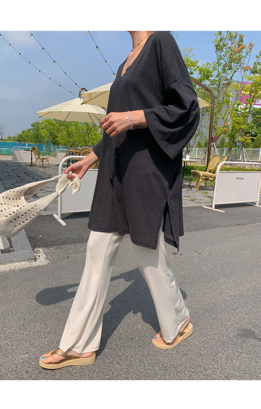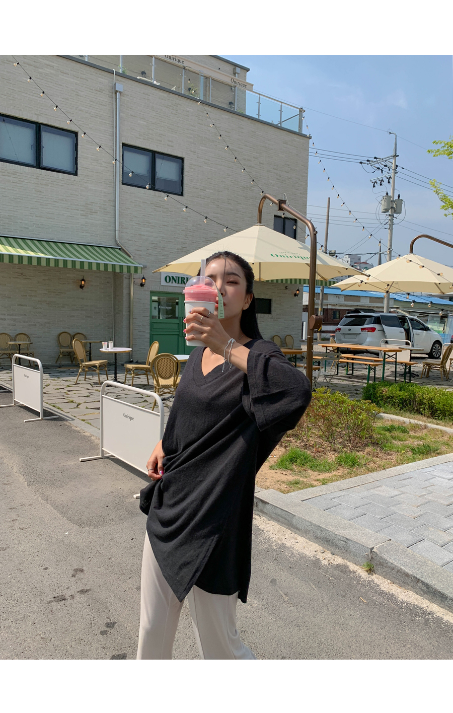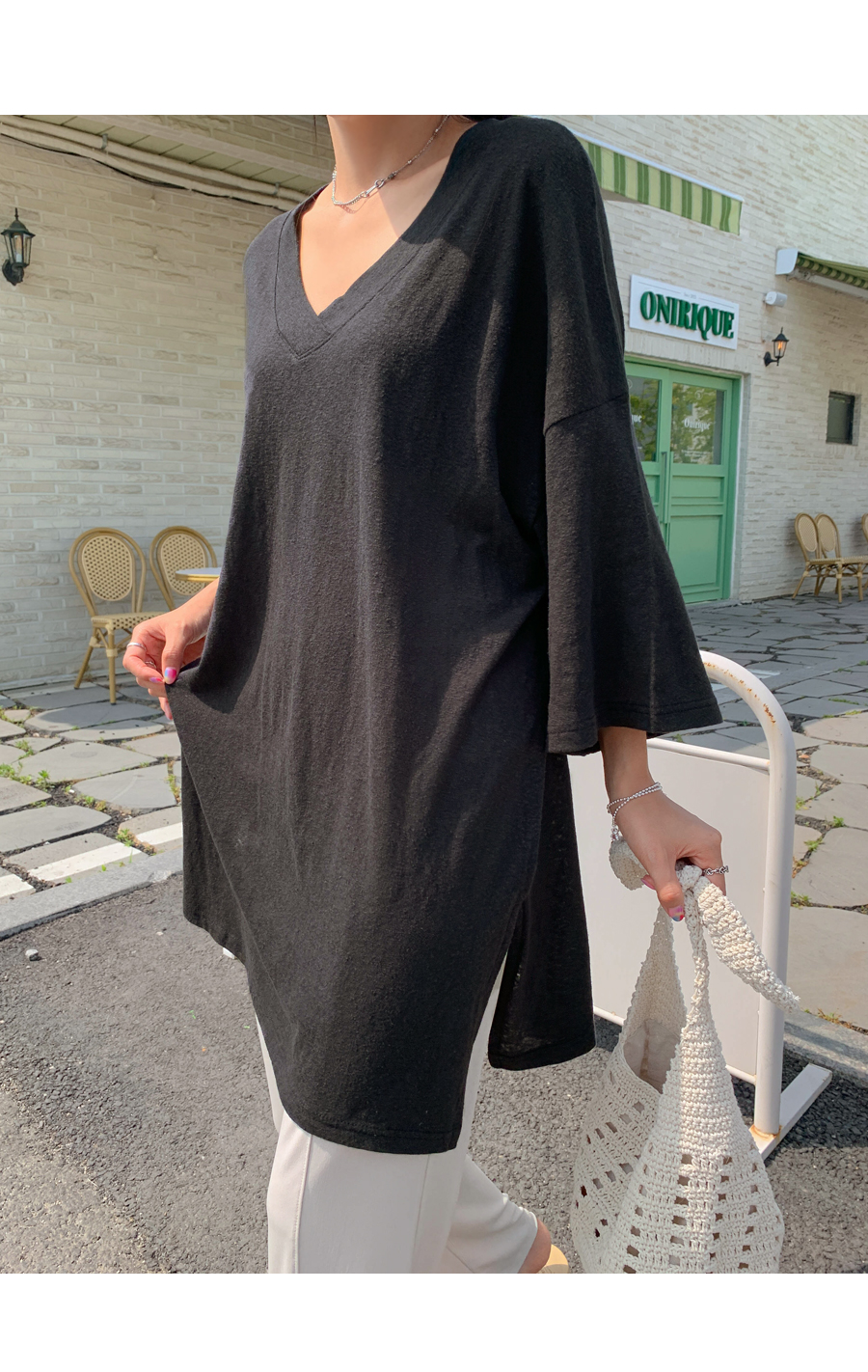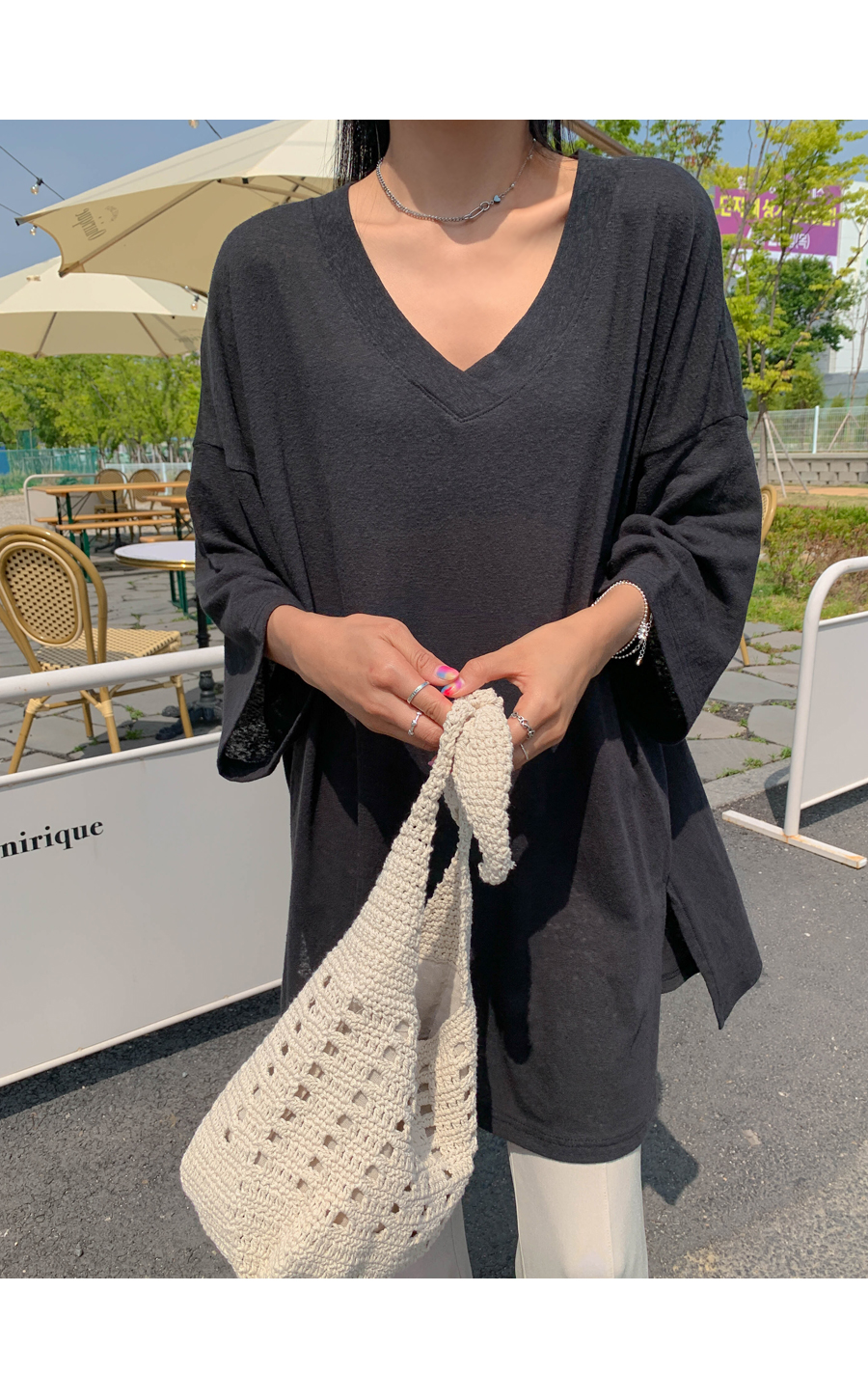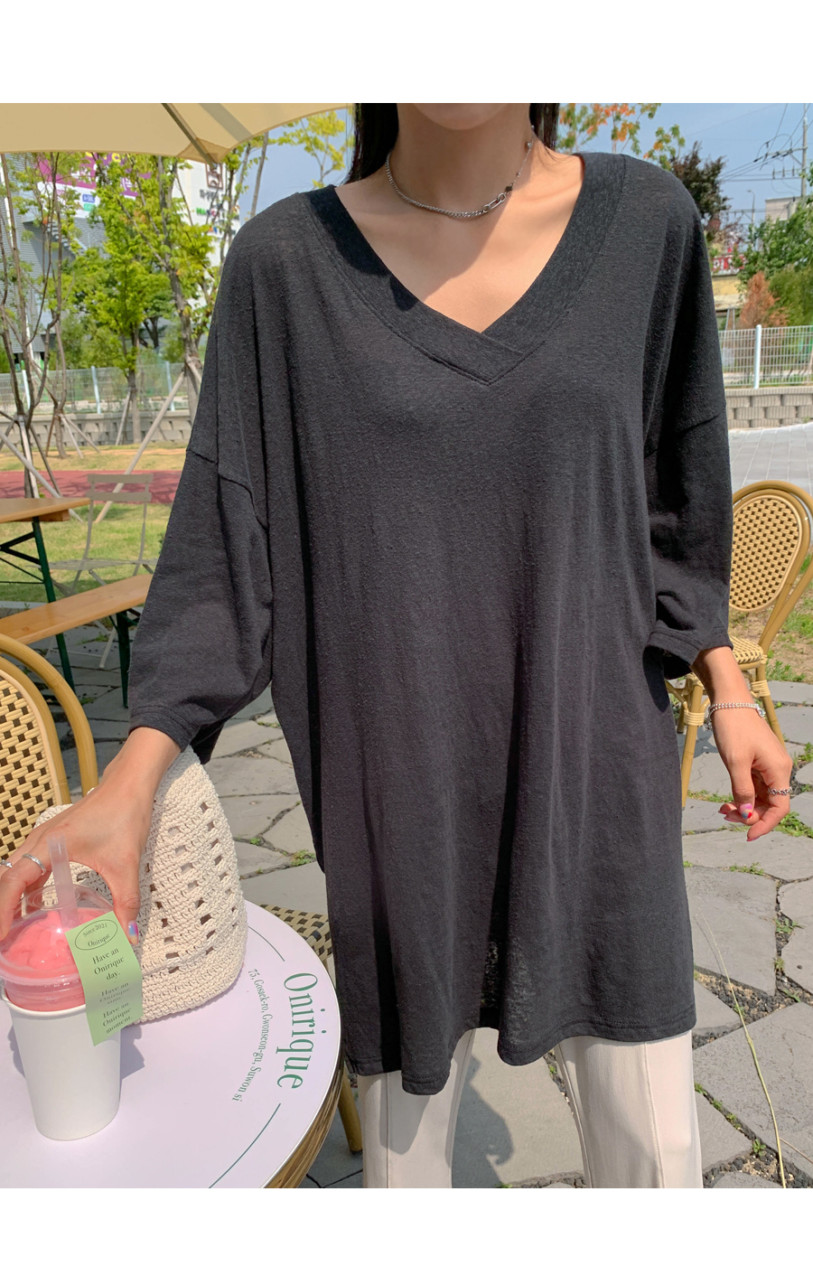 Mirang V neck long short sleeve tee