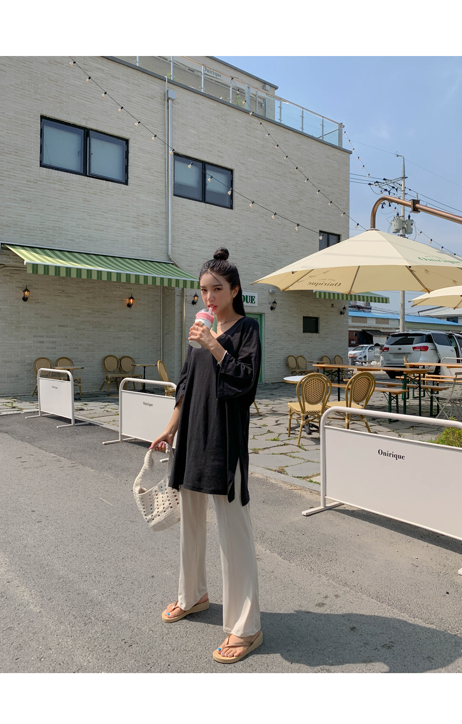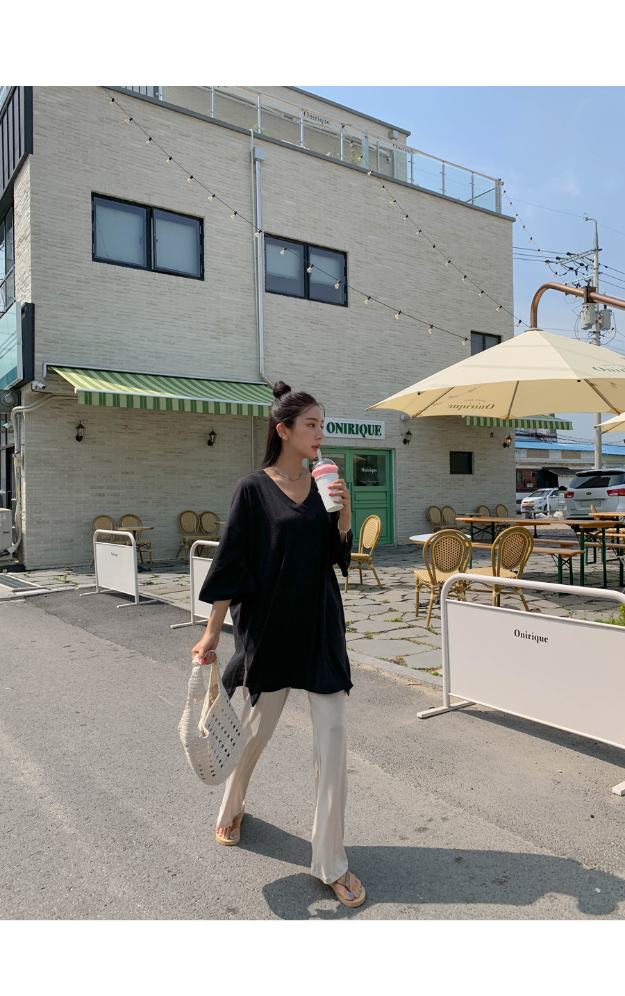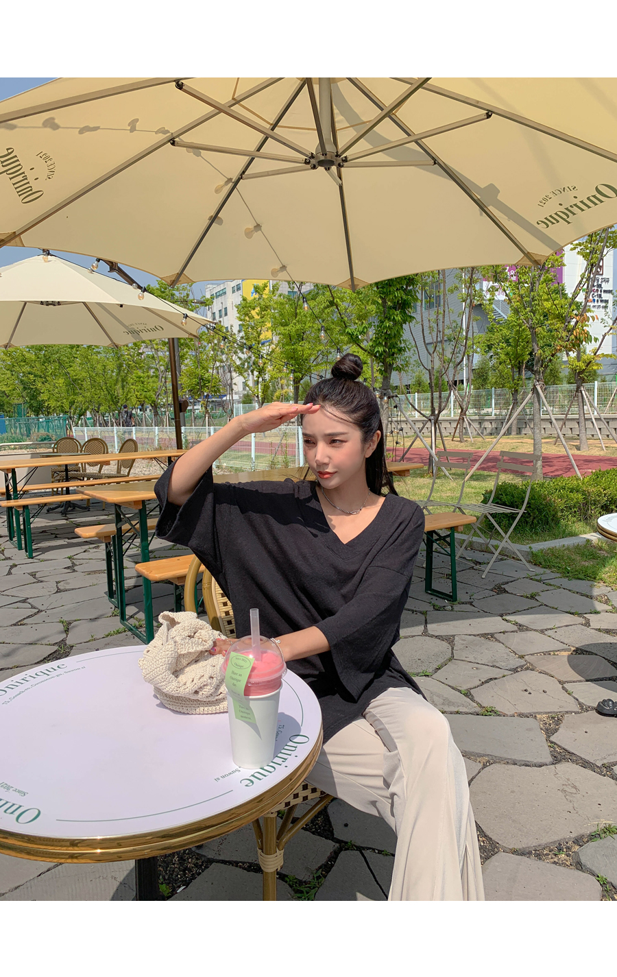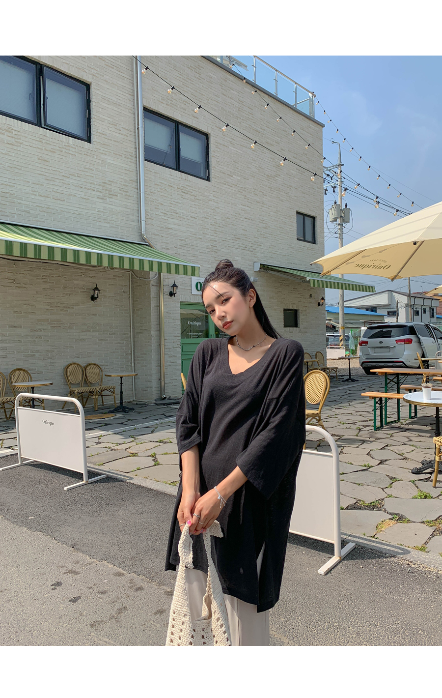 Mirang V neck long short sleeve tee