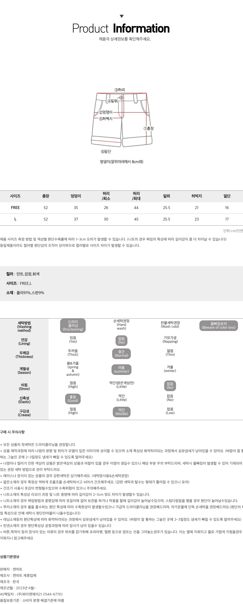 1가지 사이즈로 상세사이즈를 참고하세요