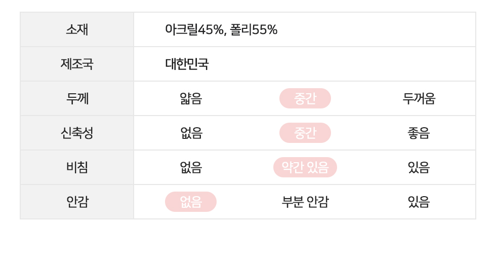 톡톡한 아크릴 폴리 혼방 소재로 제작되어