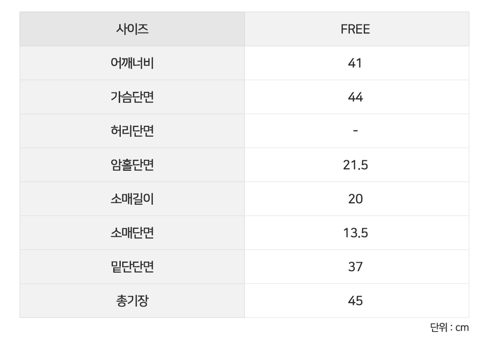 FREE 어깨단면41 가슴단면44 암홀단면21.5