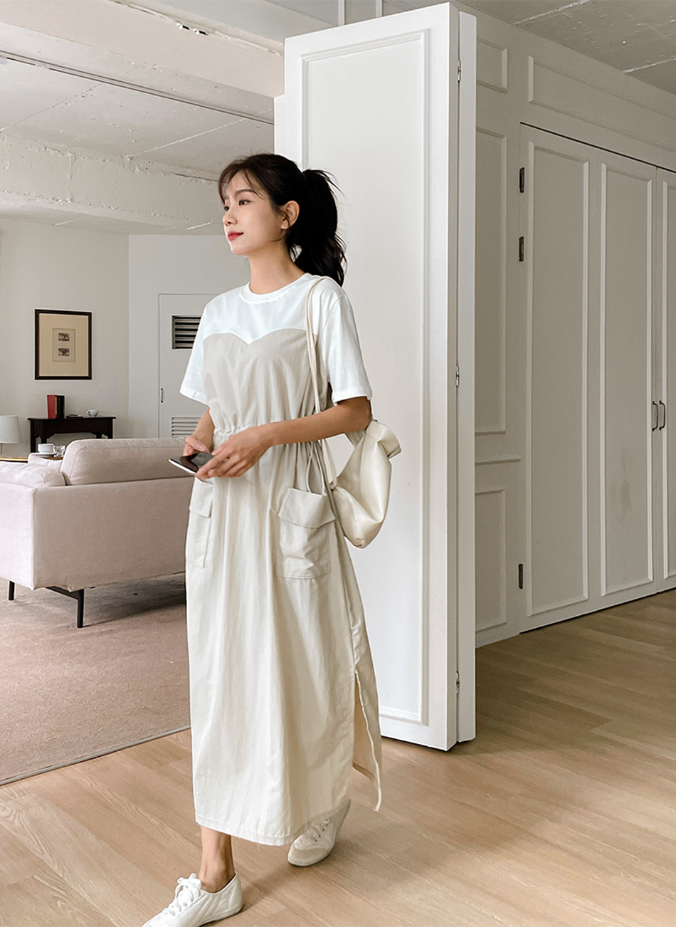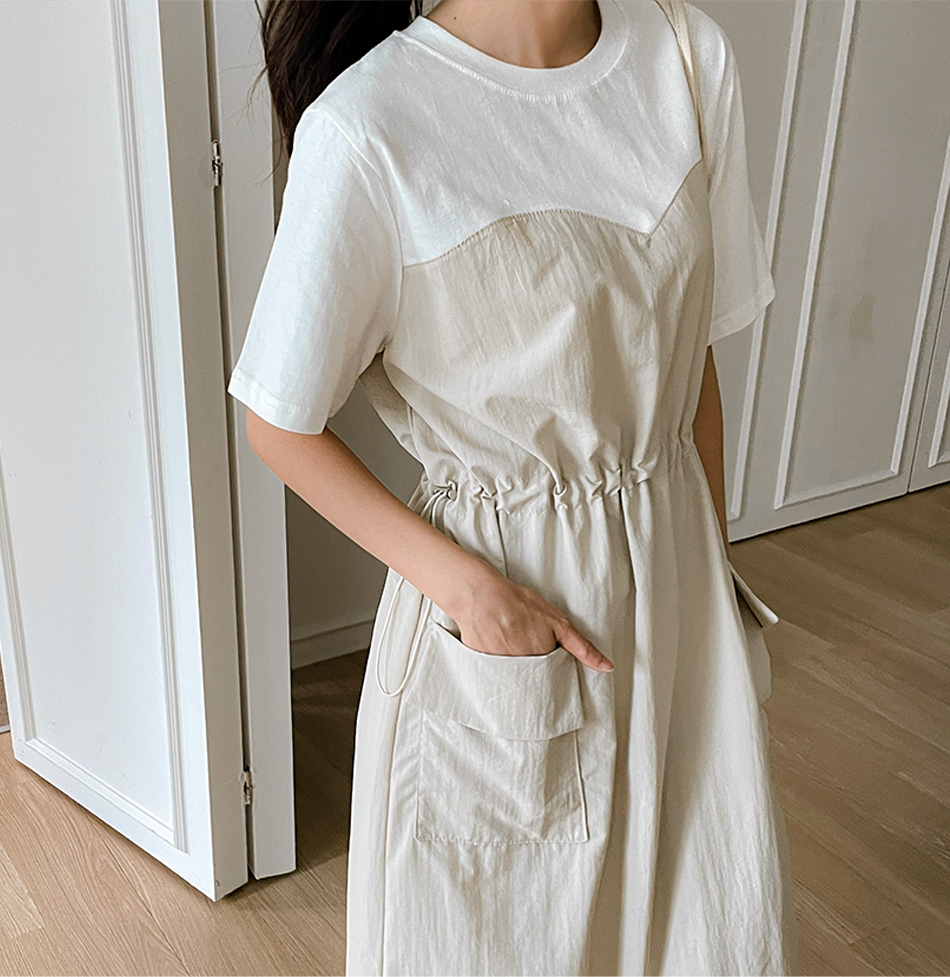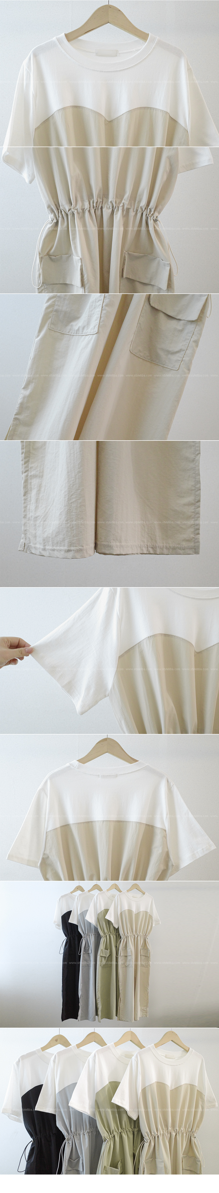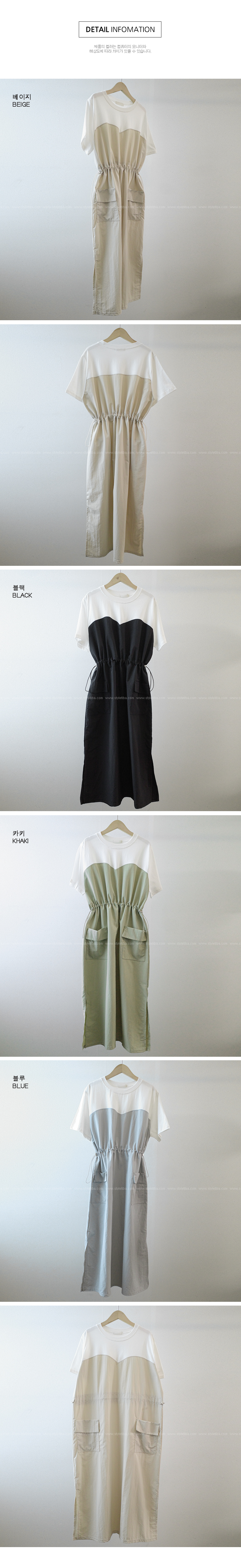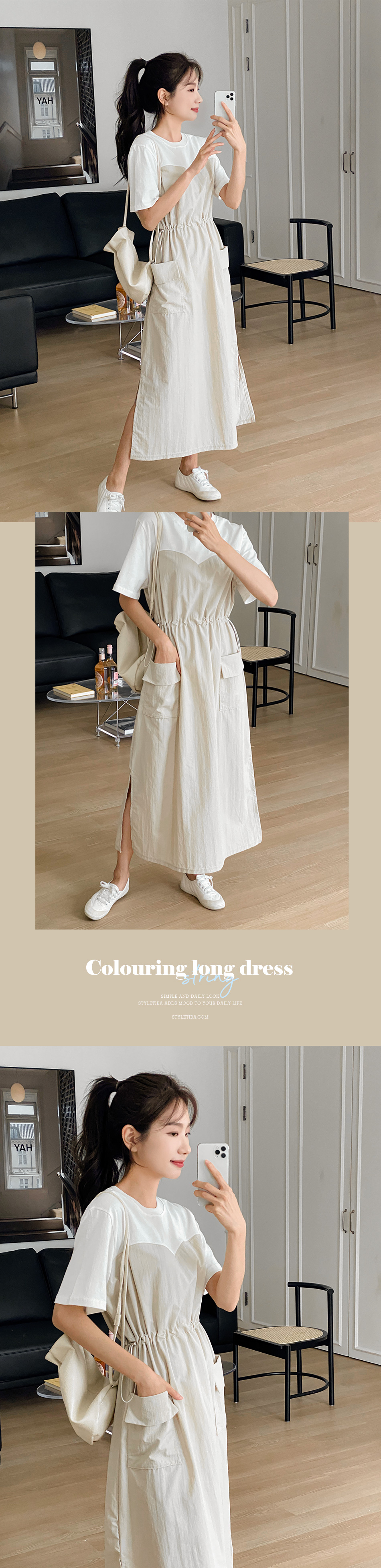 베리 배색스트링 롱원피스-4color, 여유로운 내츄럴핏-허리스트링, 사이즈조절가능-#시어서커 #쿨링 #아노락-시원하고 편안한 소재 - 스타일티바