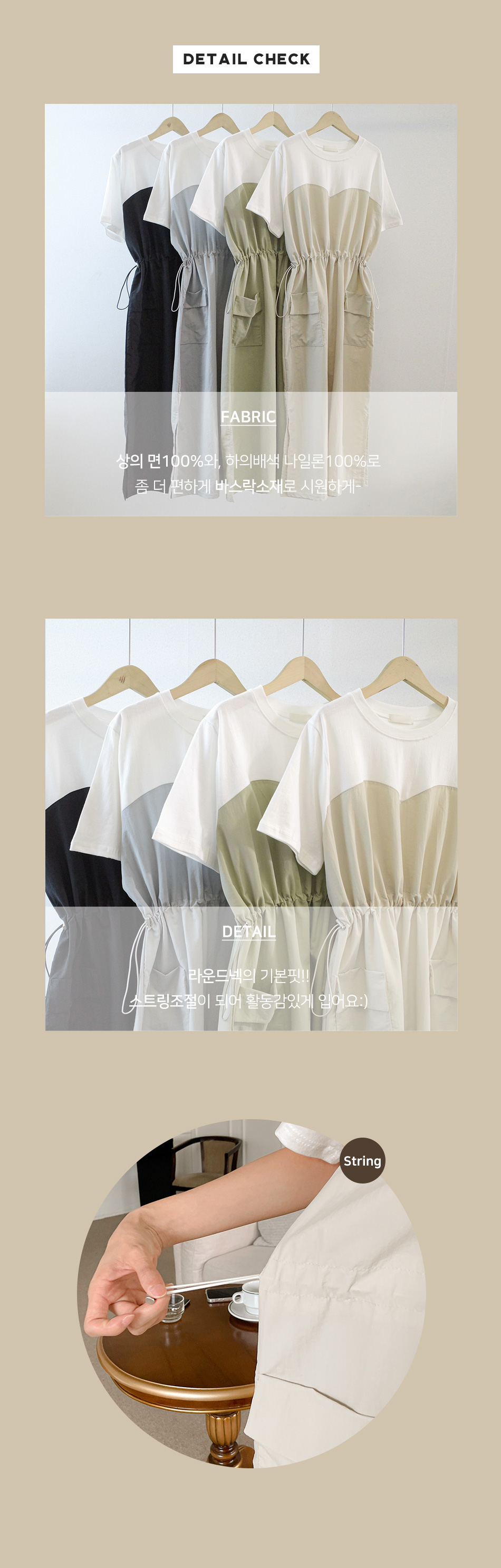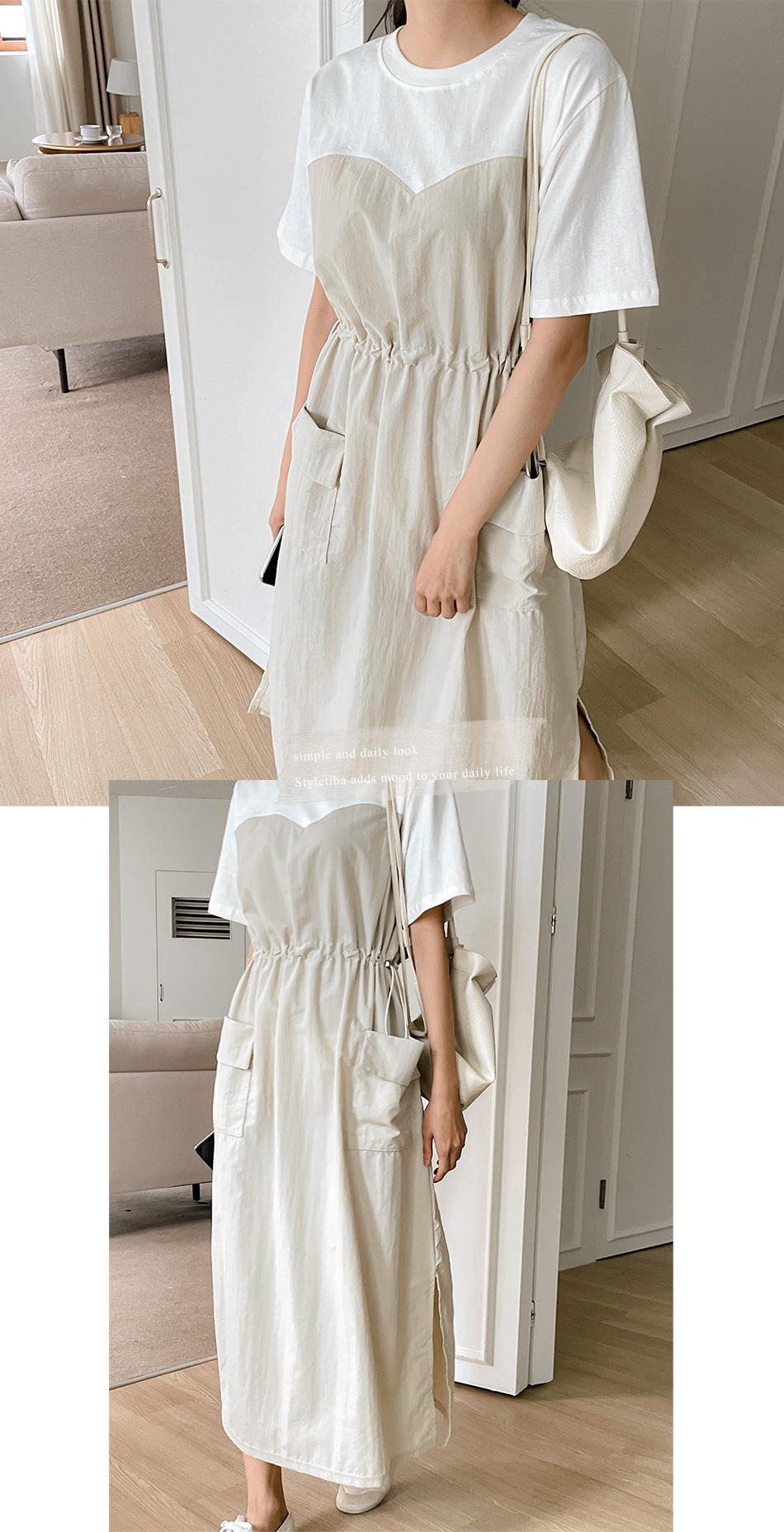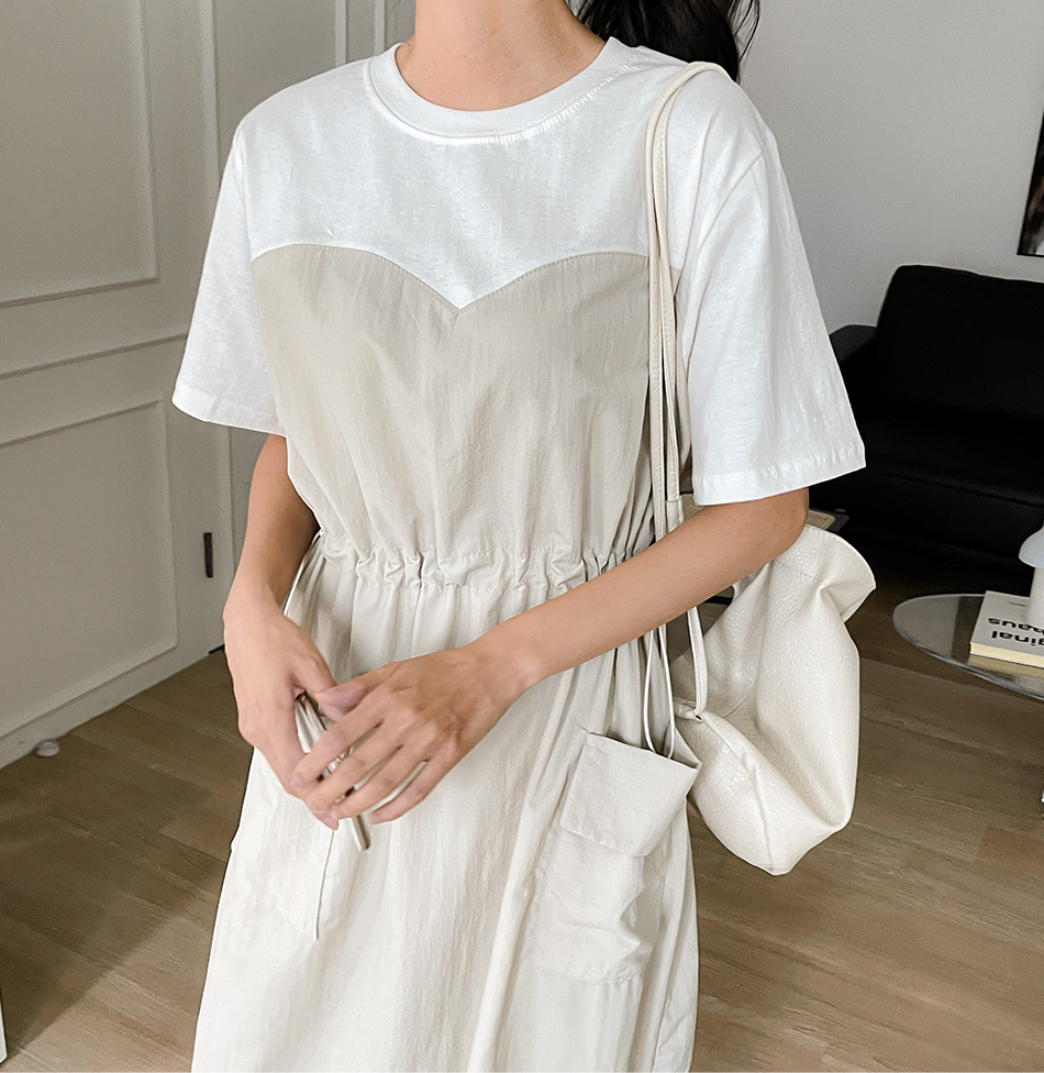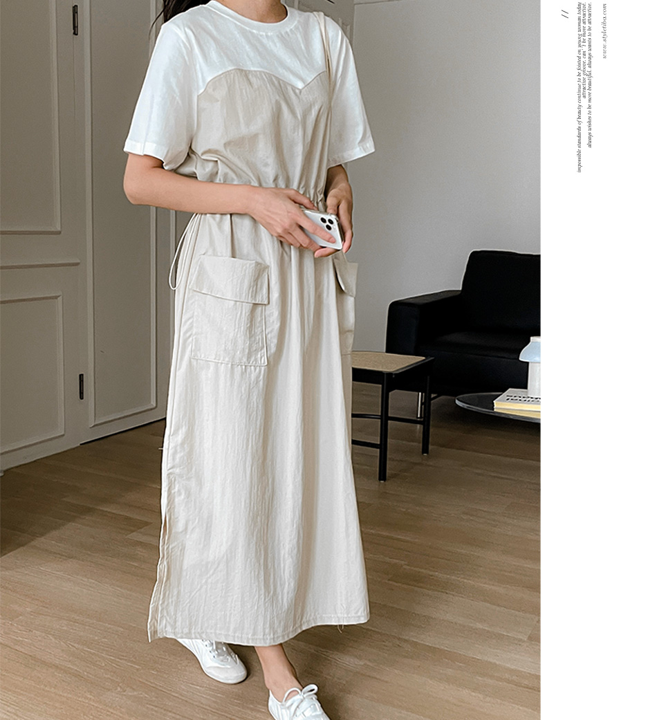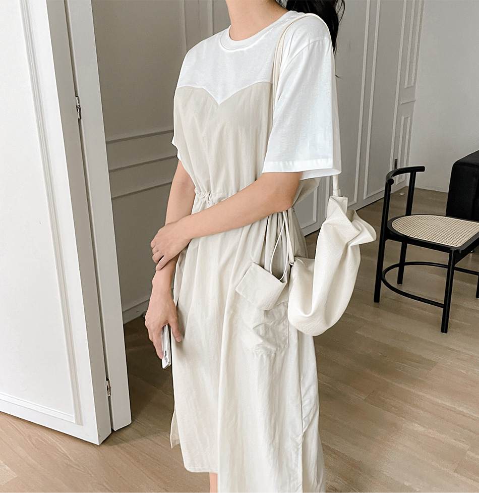 베리 배색스트링 롱원피스-4color, 여유로운 내츄럴핏-허리스트링, 사이즈조절가능-#시어서커 #쿨링 #아노락-시원하고 편안한 소재 - 스타일티바