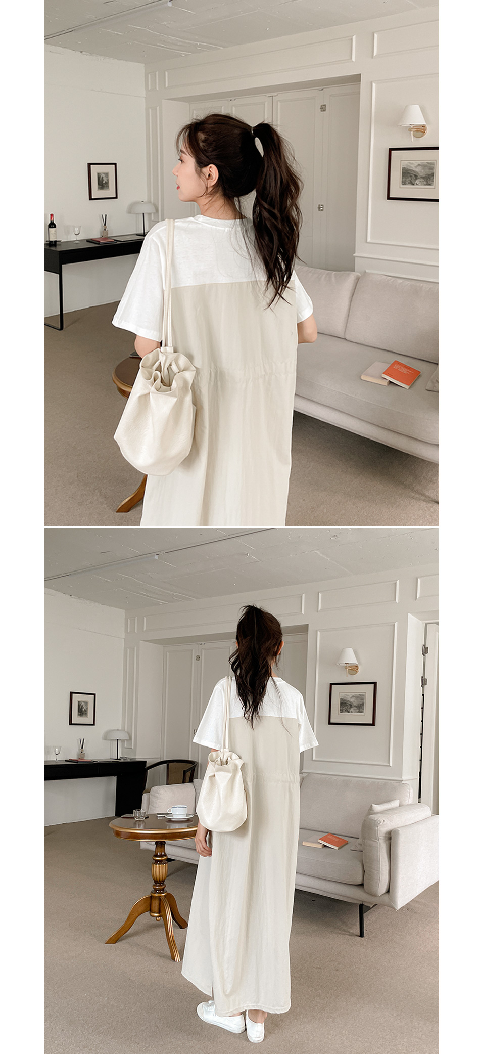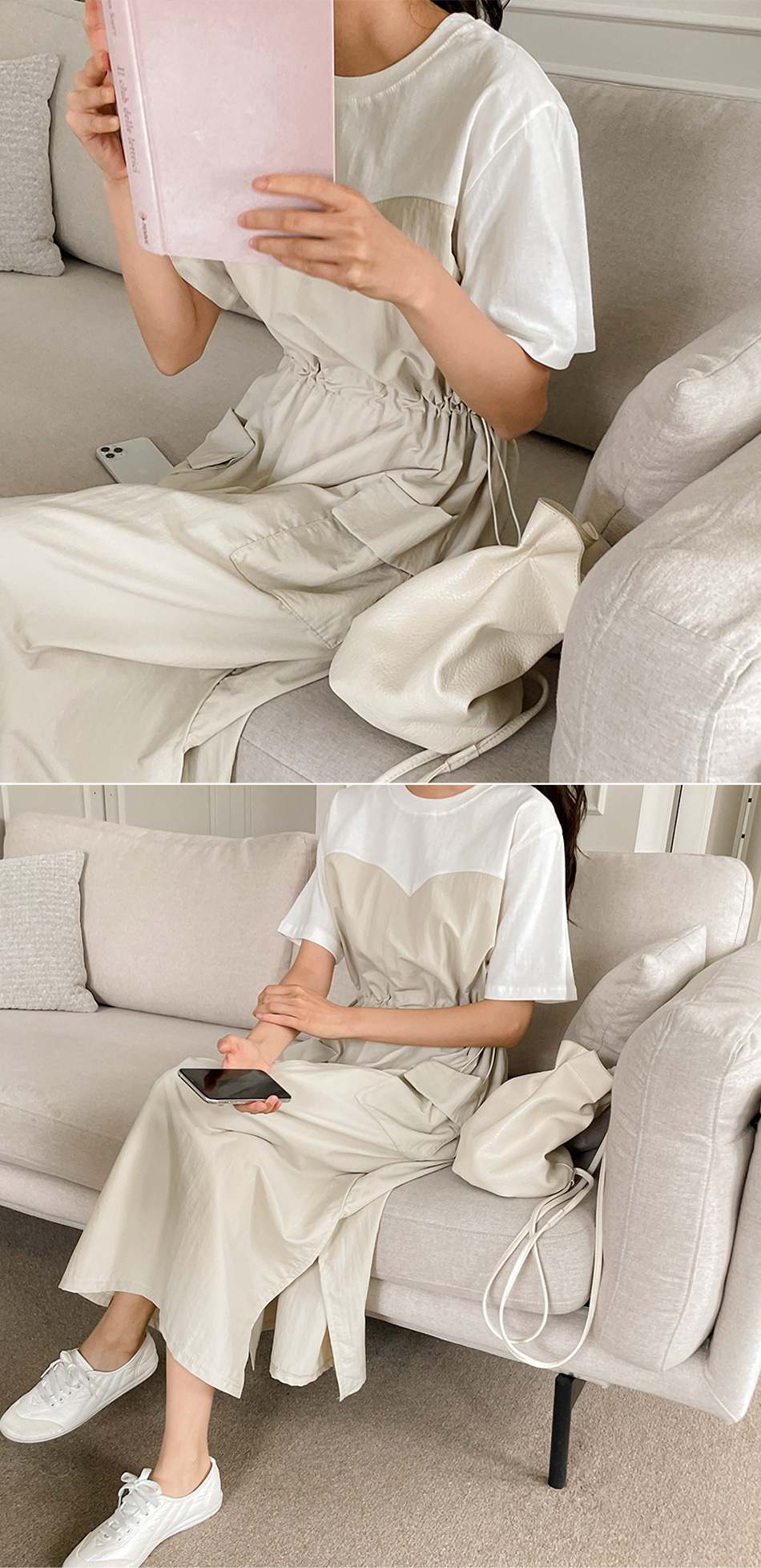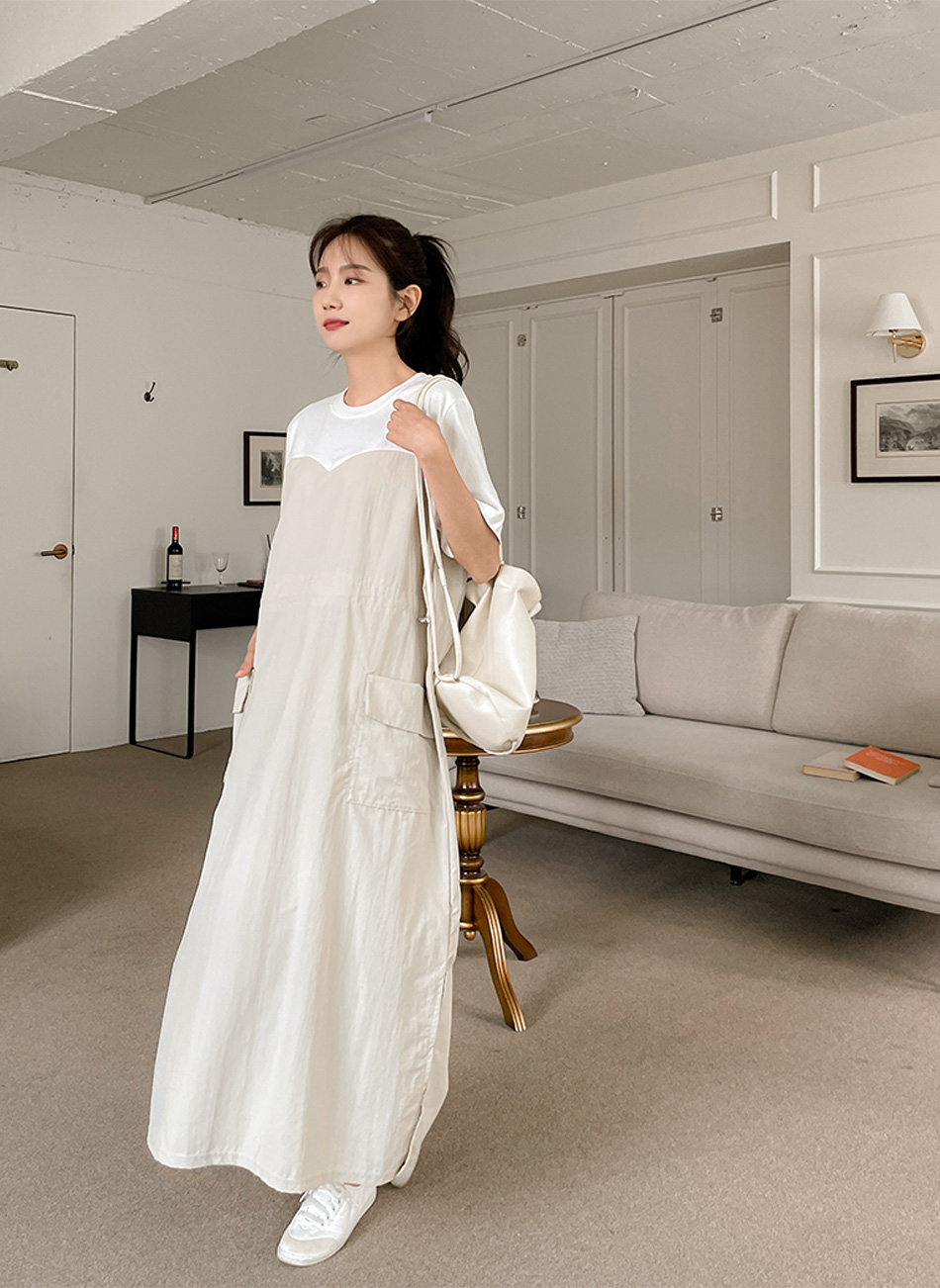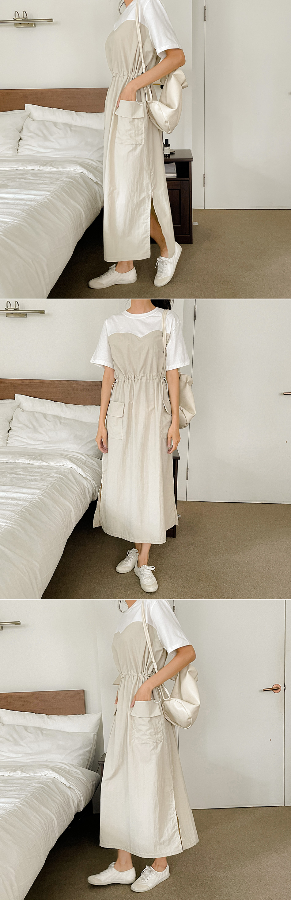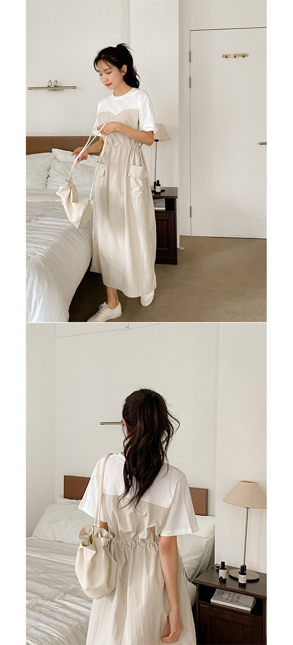베리 배색스트링 롱원피스-4color, 여유로운 내츄럴핏-허리스트링, 사이즈조절가능-#시어서커 #쿨링 #아노락-시원하고 편안한 소재 - 스타일티바