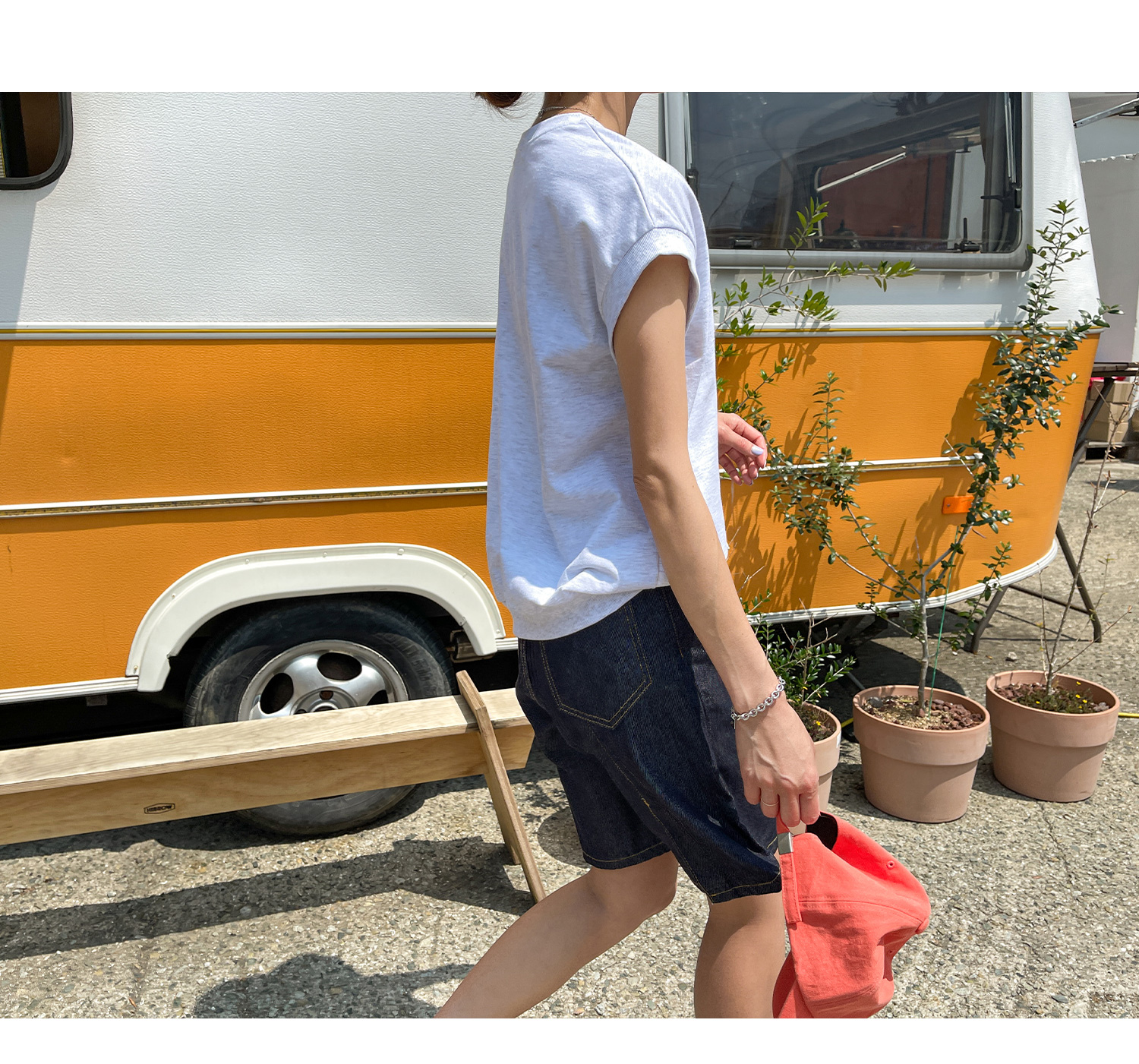데님, 스커트 등 다양한 하의와 코디하여