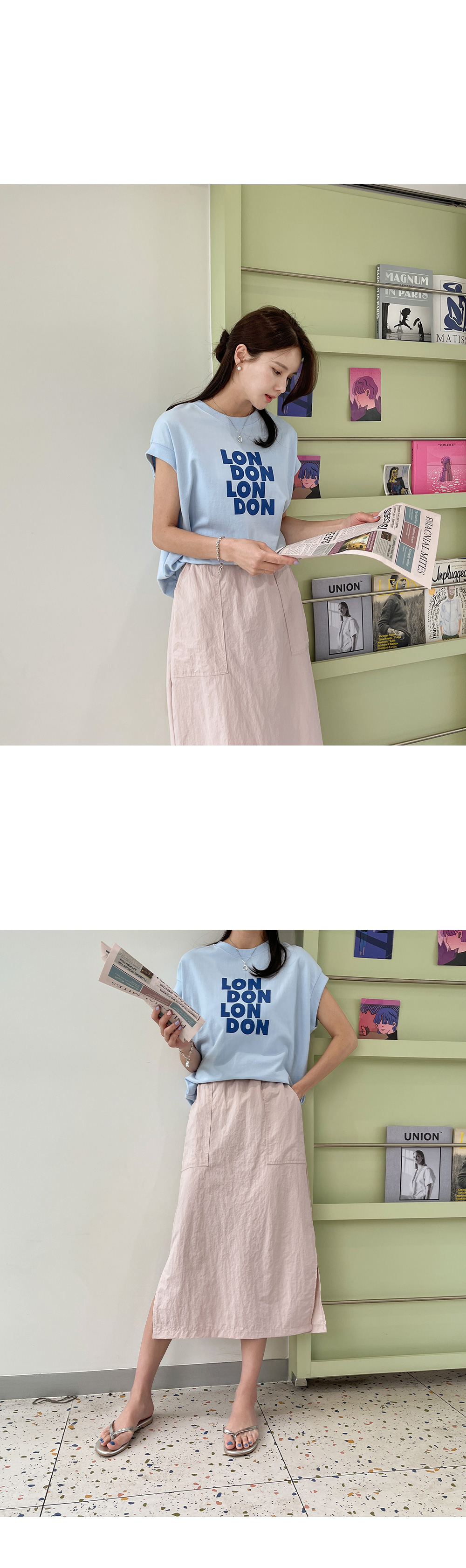 전체적으로 여유있는 핏과 기장감으로
