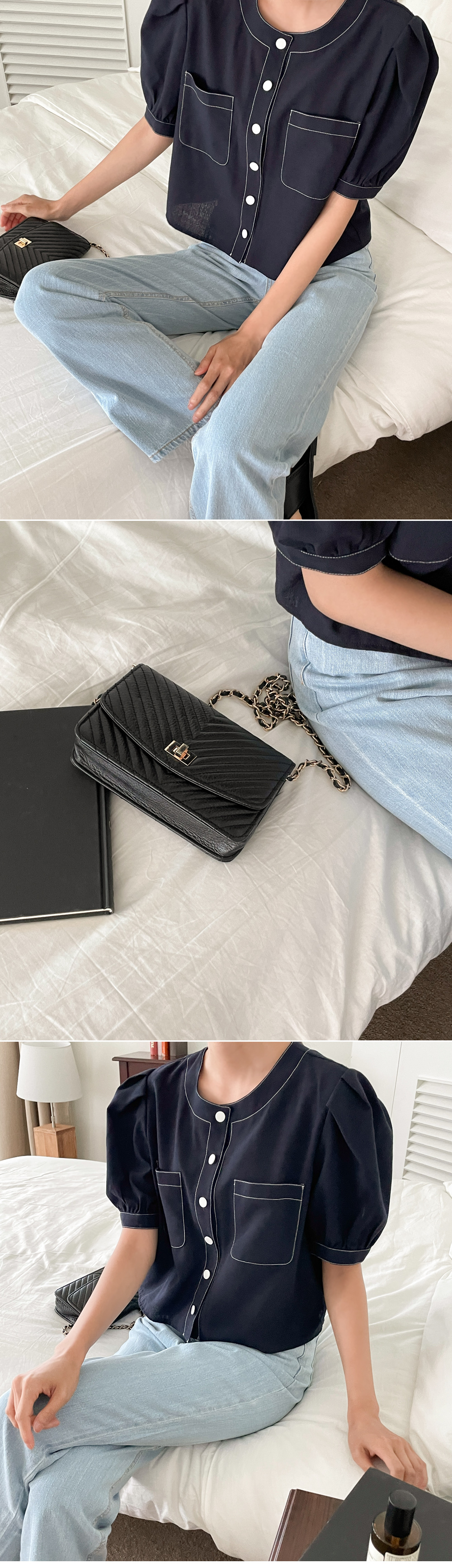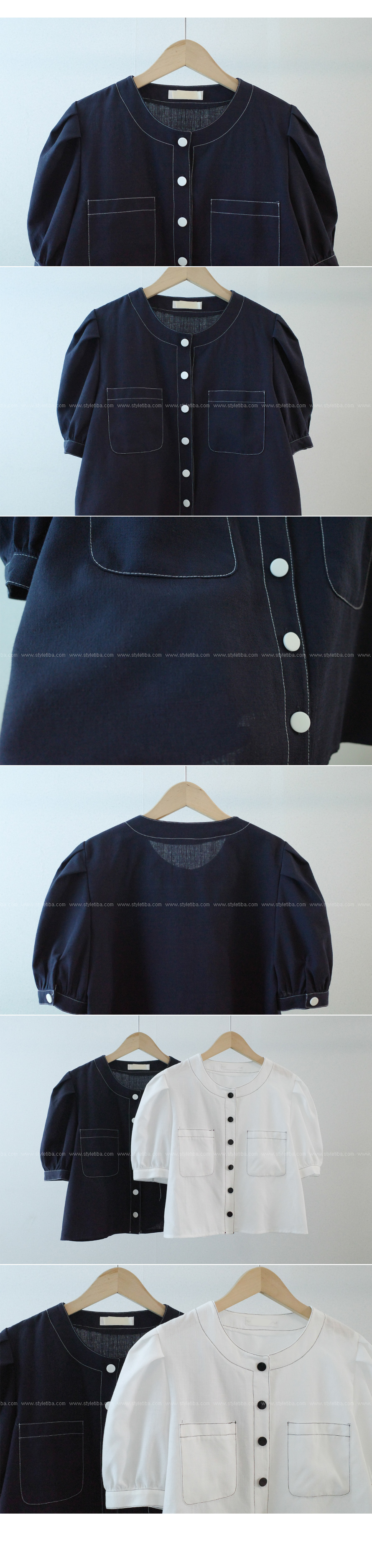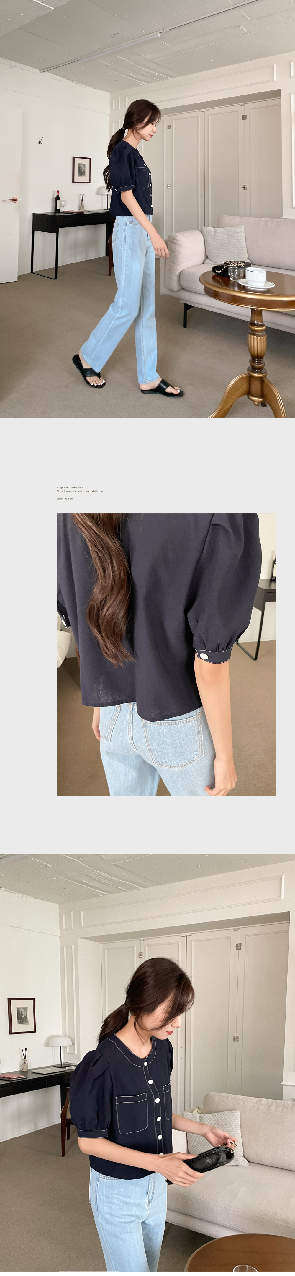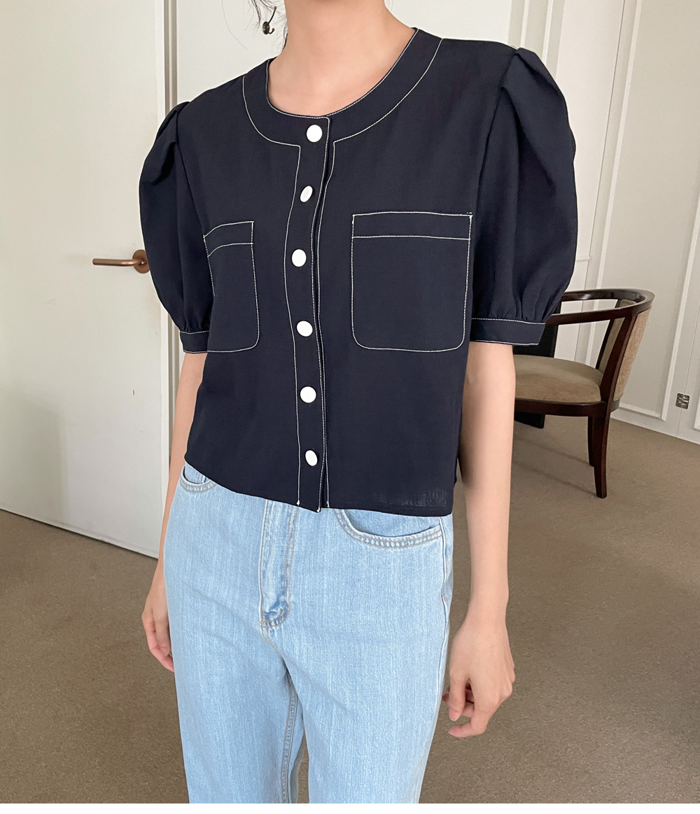 #네슈 스티치 퍼프블라우스