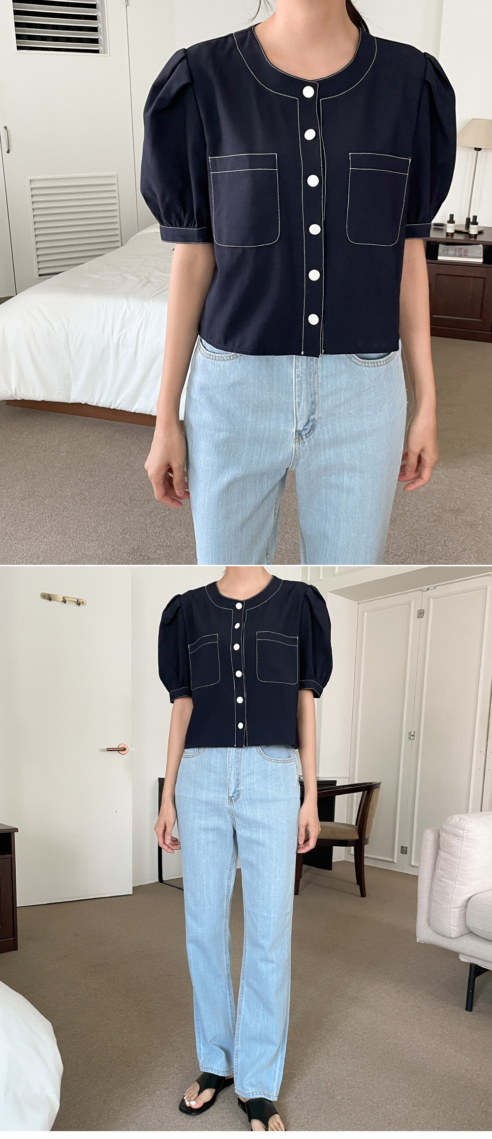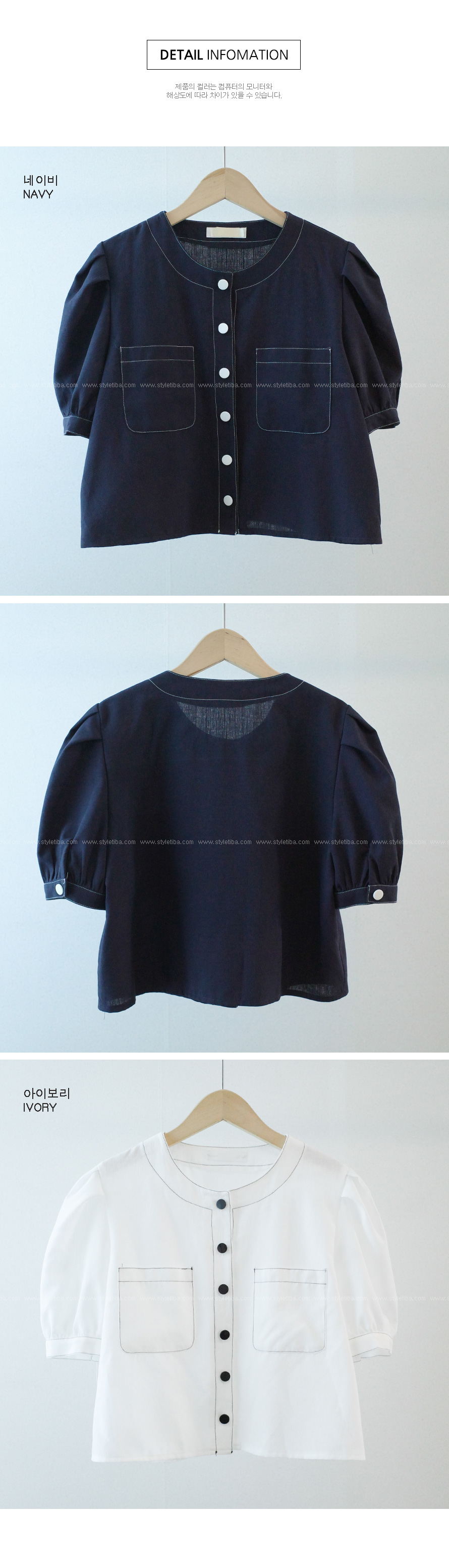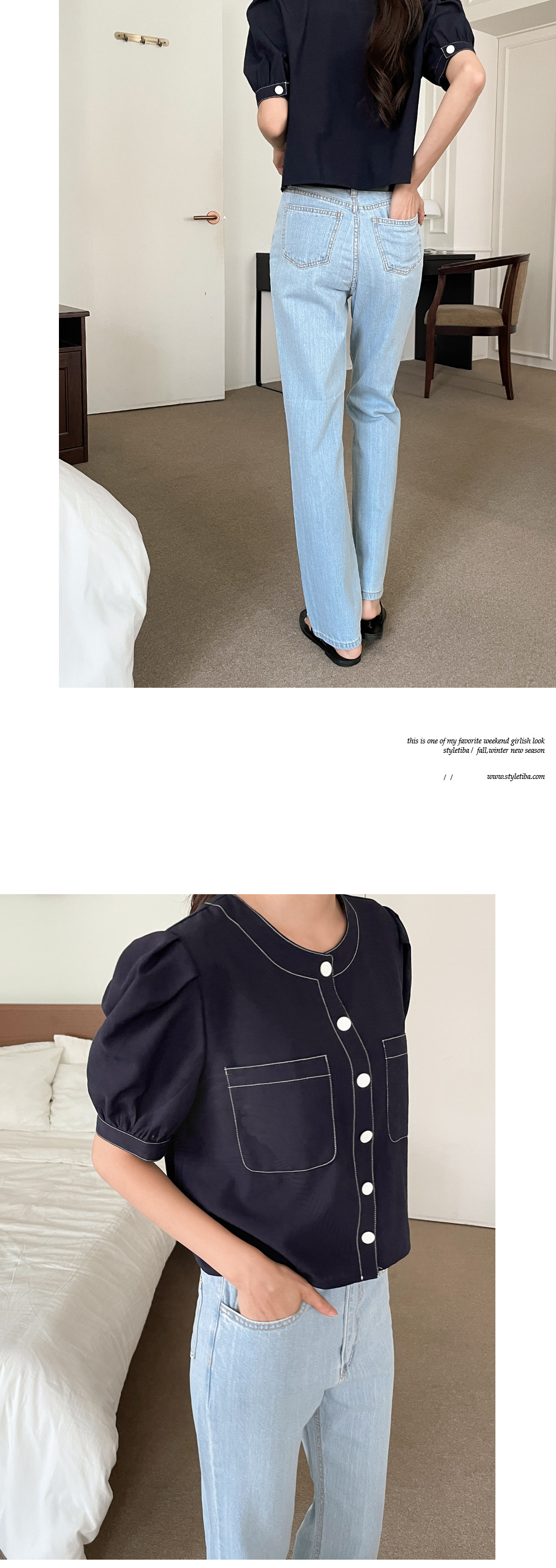 #네슈 스티치 퍼프블라우스