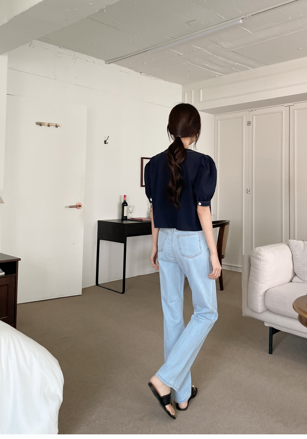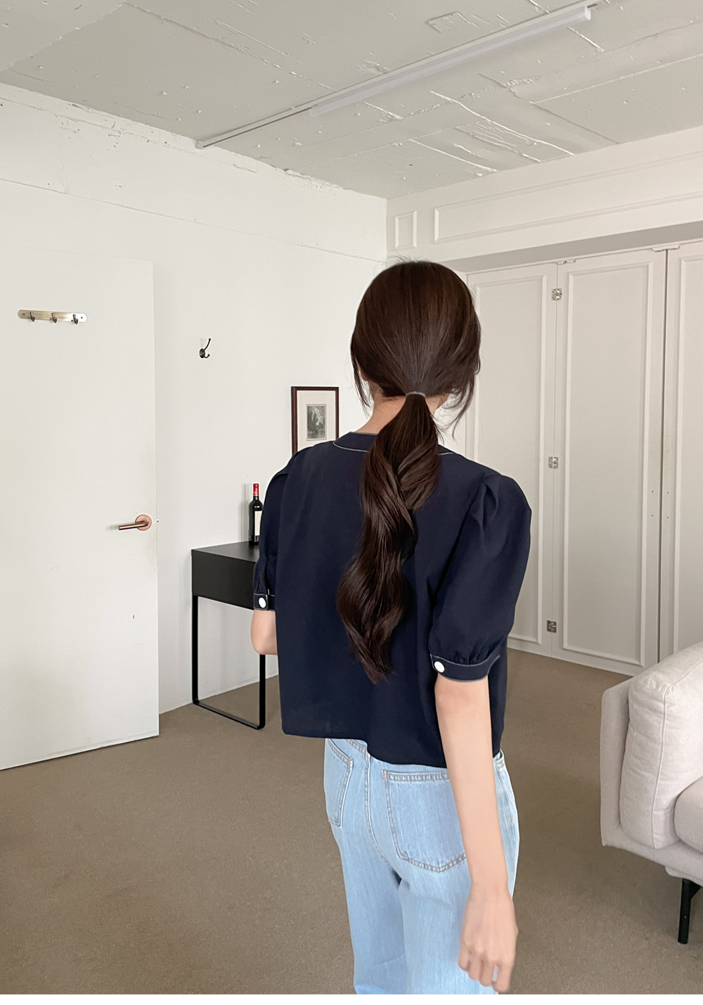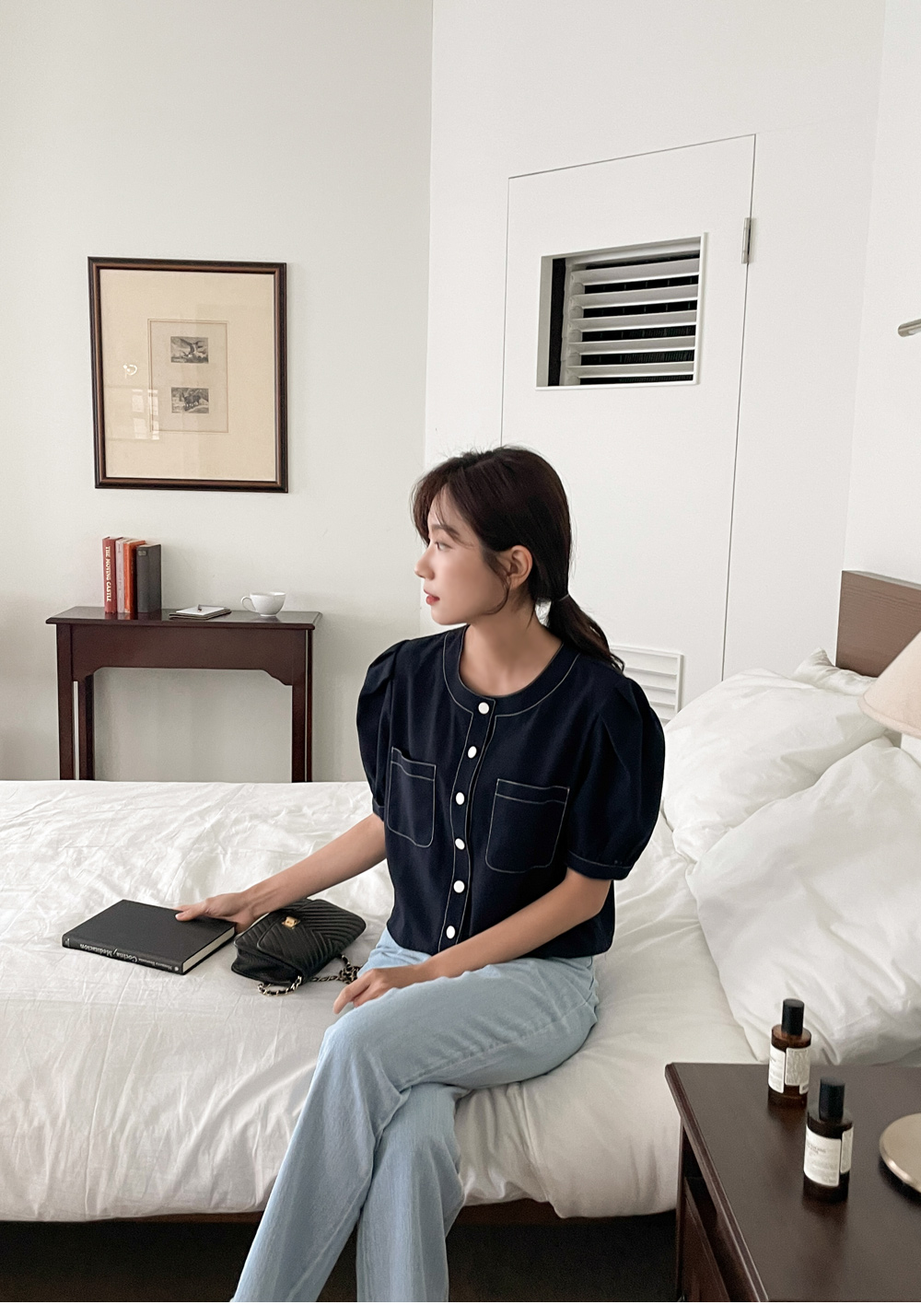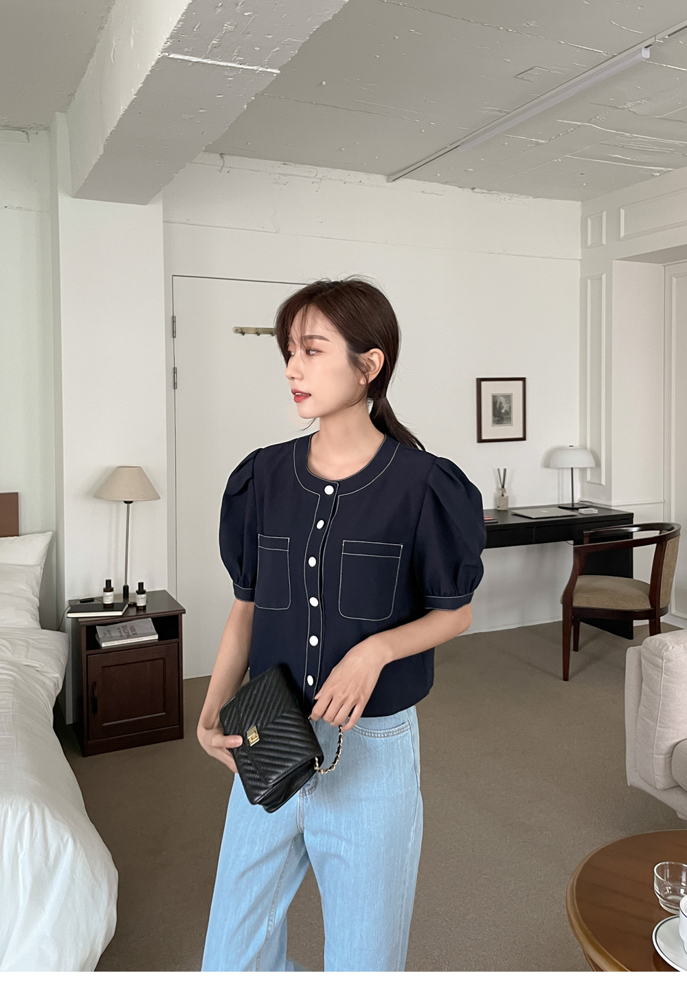 #네슈 스티치 퍼프블라우스