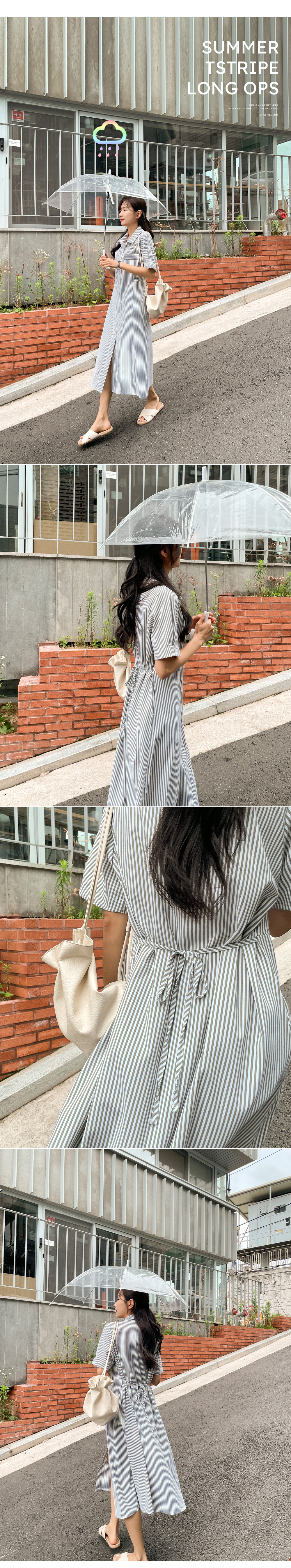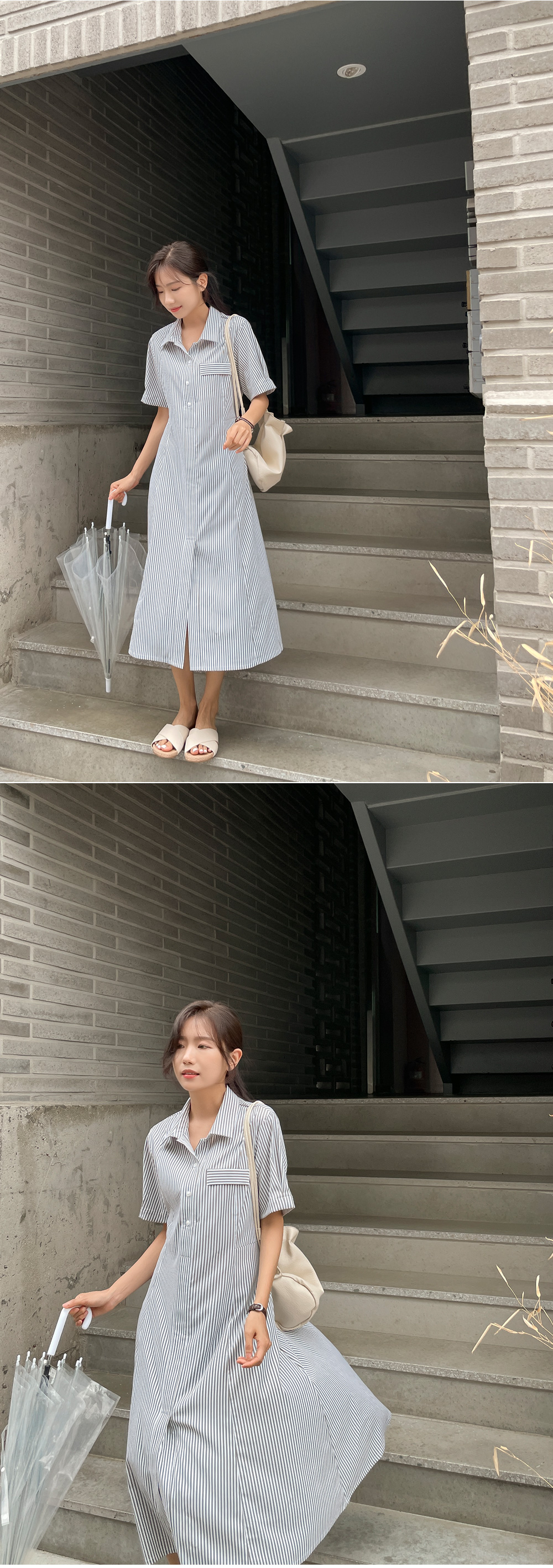 무드 스트라이프 카라원피스-2color, 쾌적하고 드라이한 원단-움직일때 마다 자연스러운 플레어핏-스테디셀러 옷장속 필수~롱원피스-처음처럼 산뜻하게 - 스타일티바