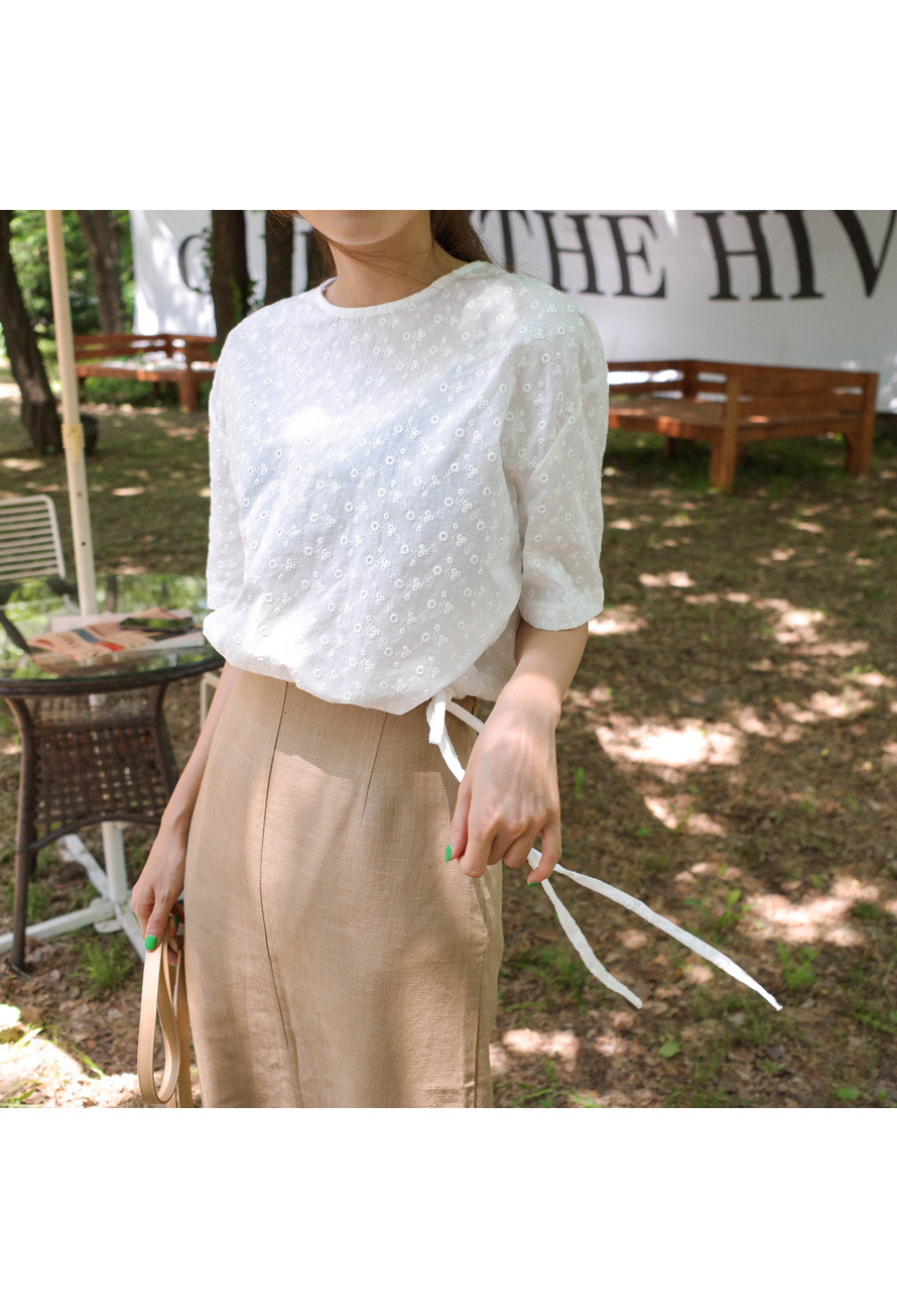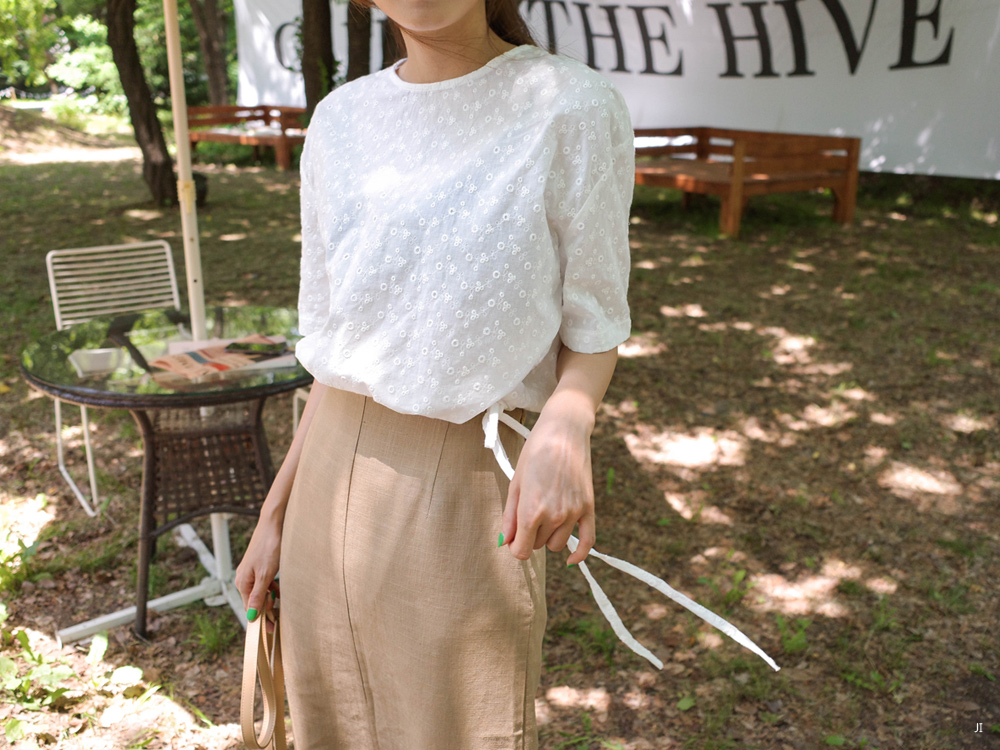 Punching Eyelet Blouse-PURE 100% Cotton, Lovely Punching Lace-Edge String, lovely look complete! - Style Tee