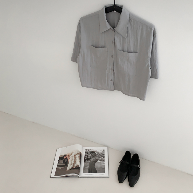 단정한 넥 카라와 버튼으로 오픈 클로징이 가능해요.