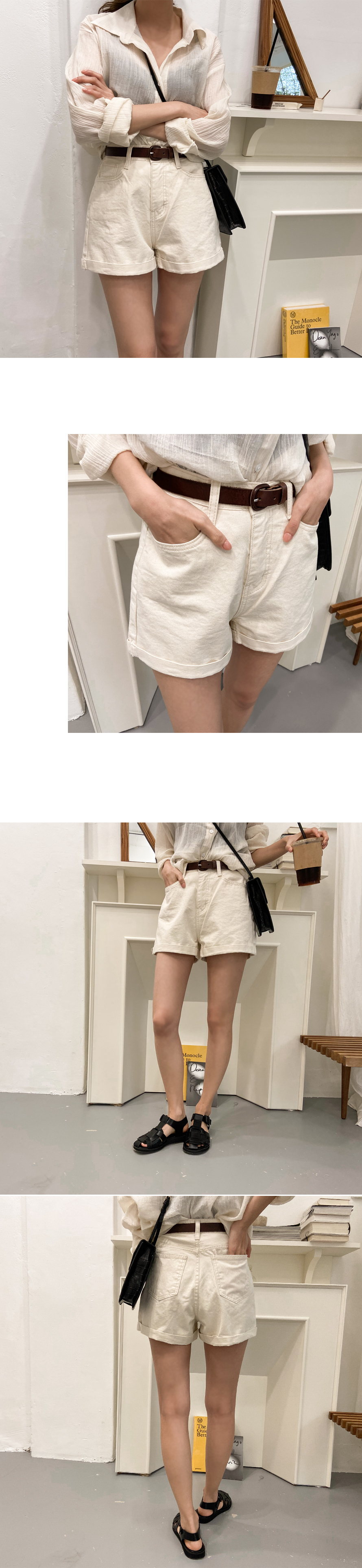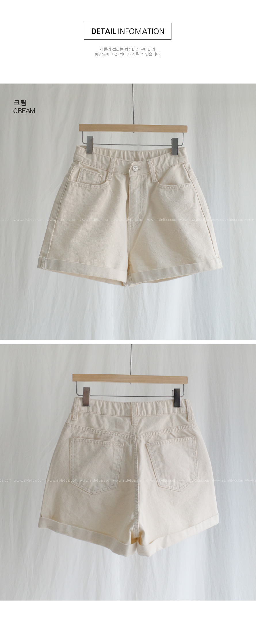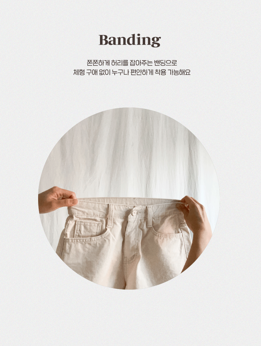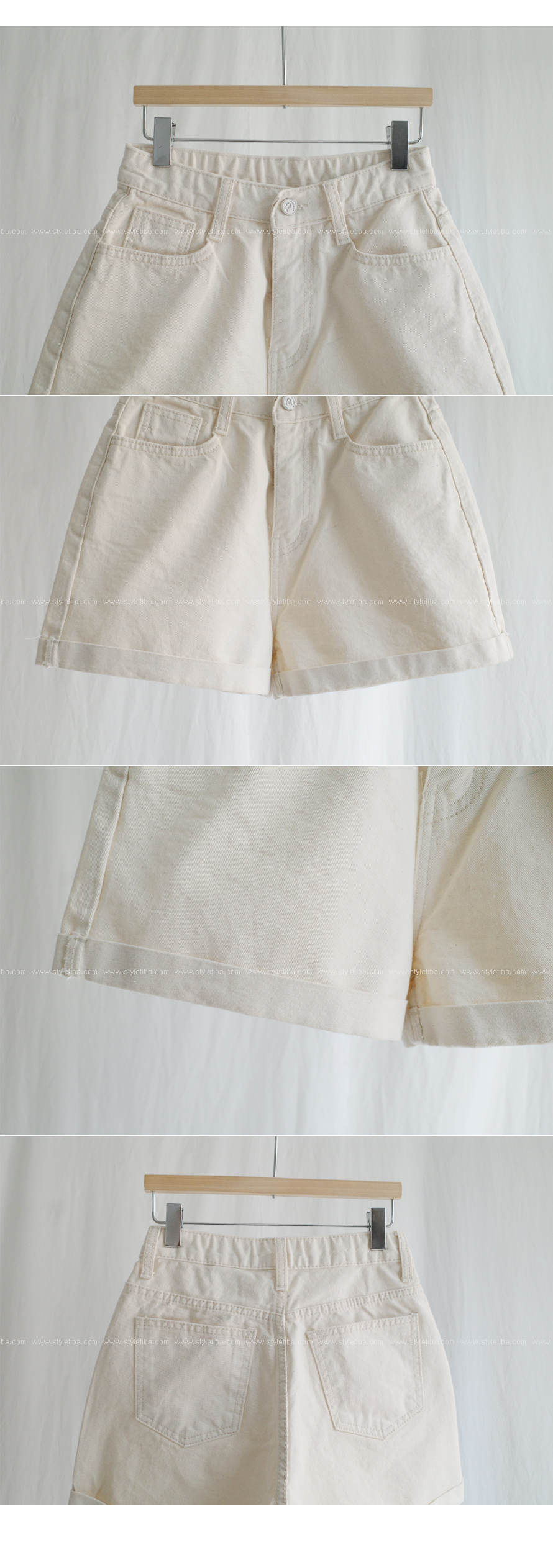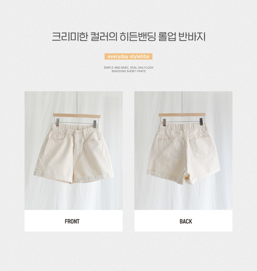 크리미한 컬러의 히든밴딩 롤업 반바지