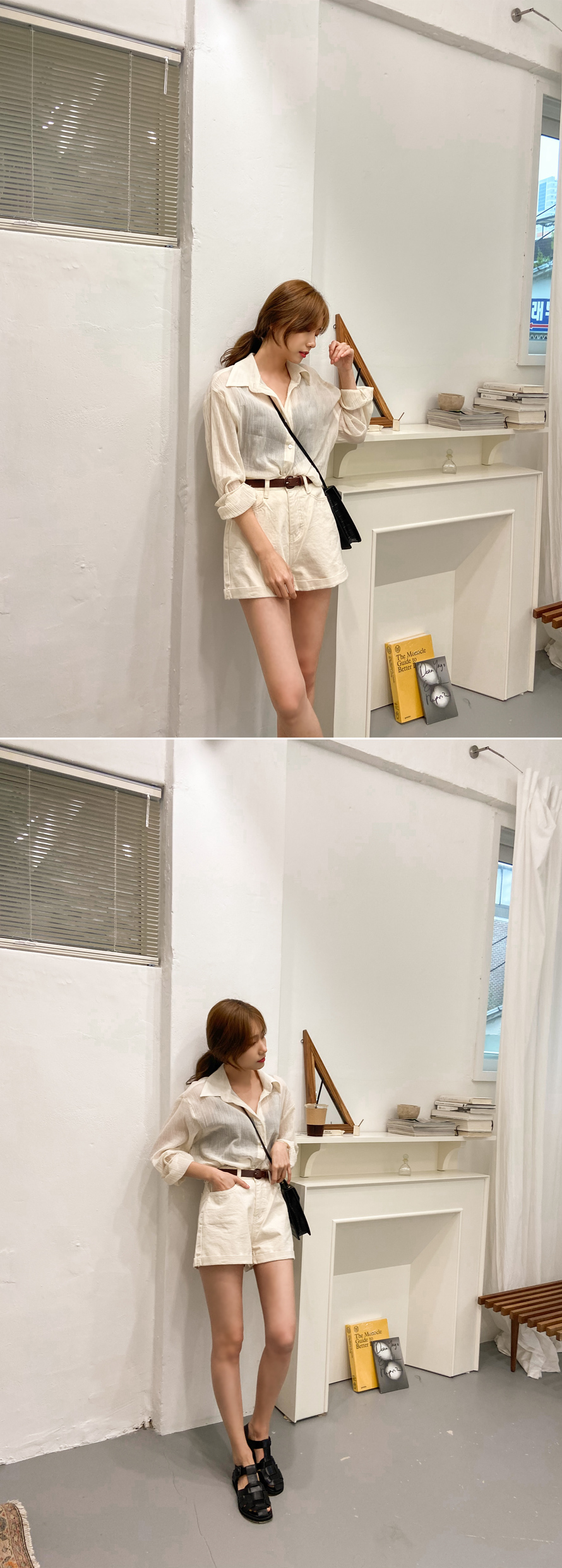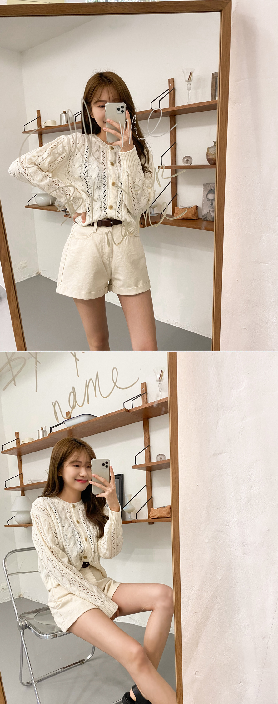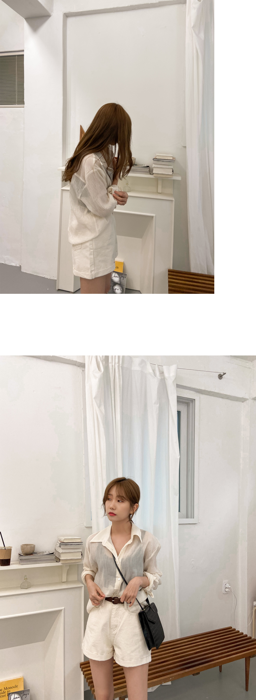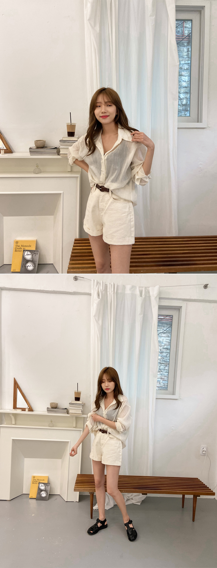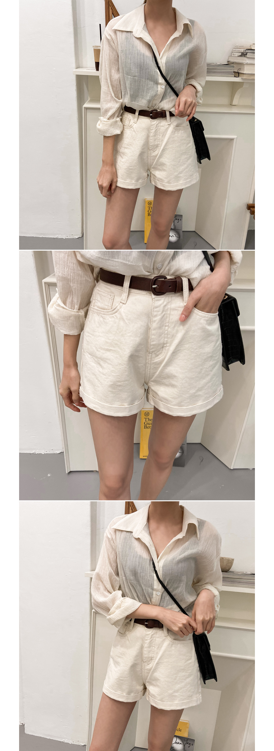 크리미한 컬러의 히든밴딩 롤업 반바지
