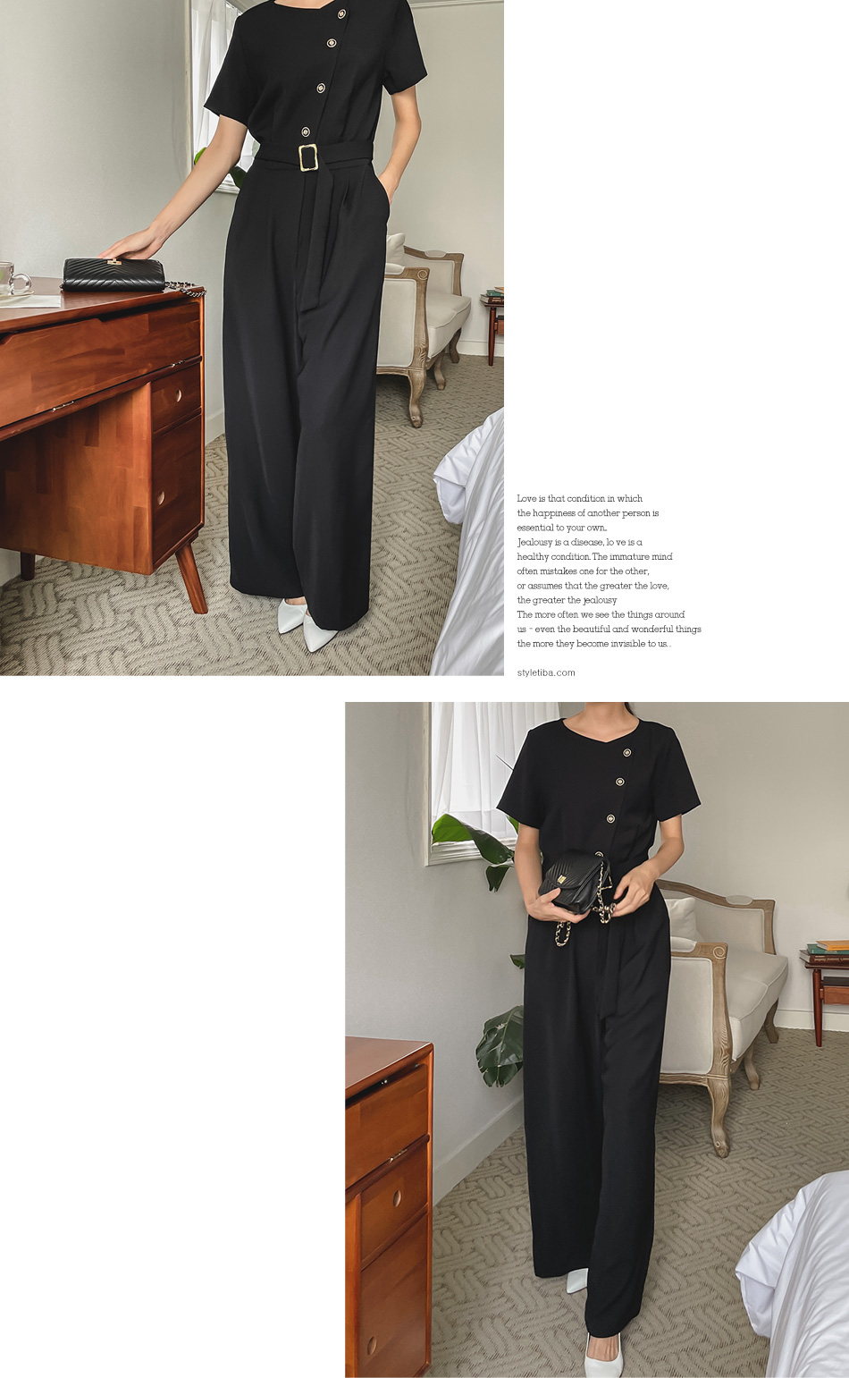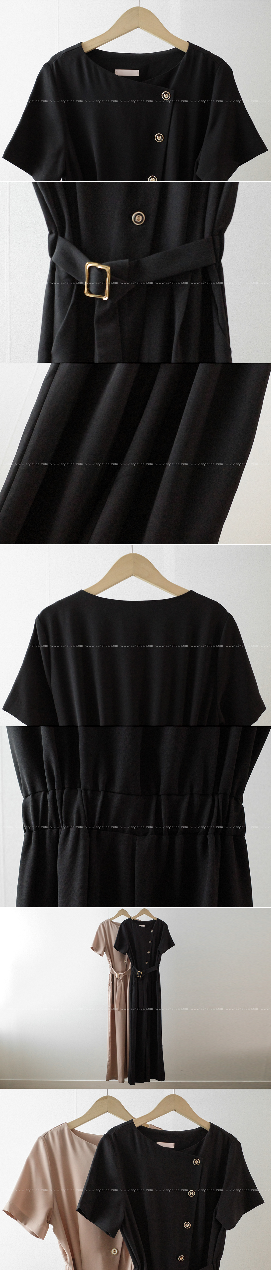 레아 사선버튼 벨트점프수트-2color,성숙미 페미닌 무드-코디걱정없는 간편한 점프수트!!-허리 뒷밴딩, 바디라인을 더욱 슬림하게 - 스타일티바