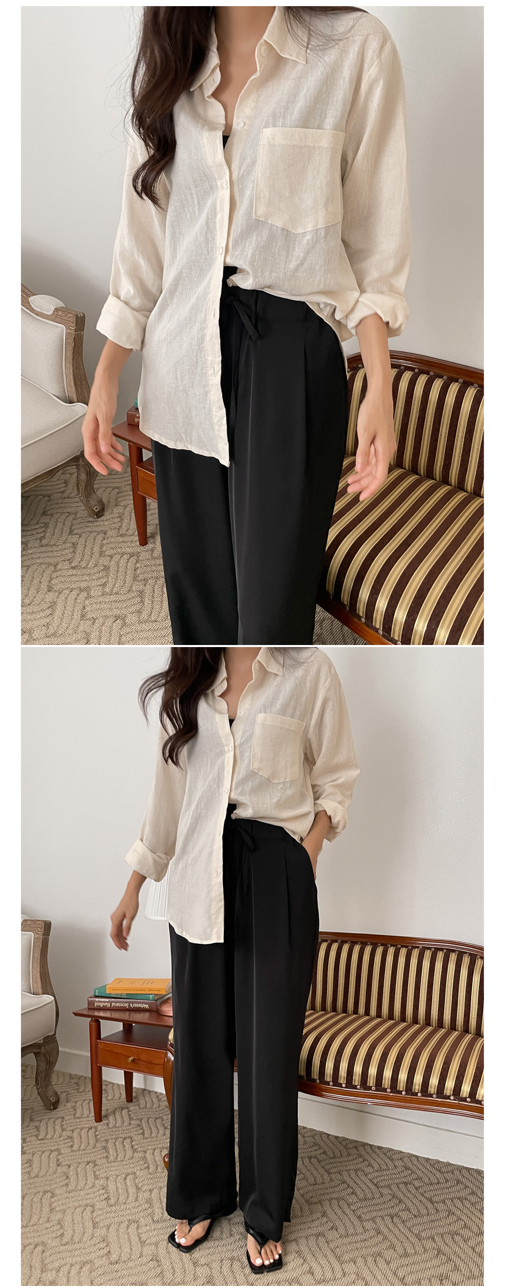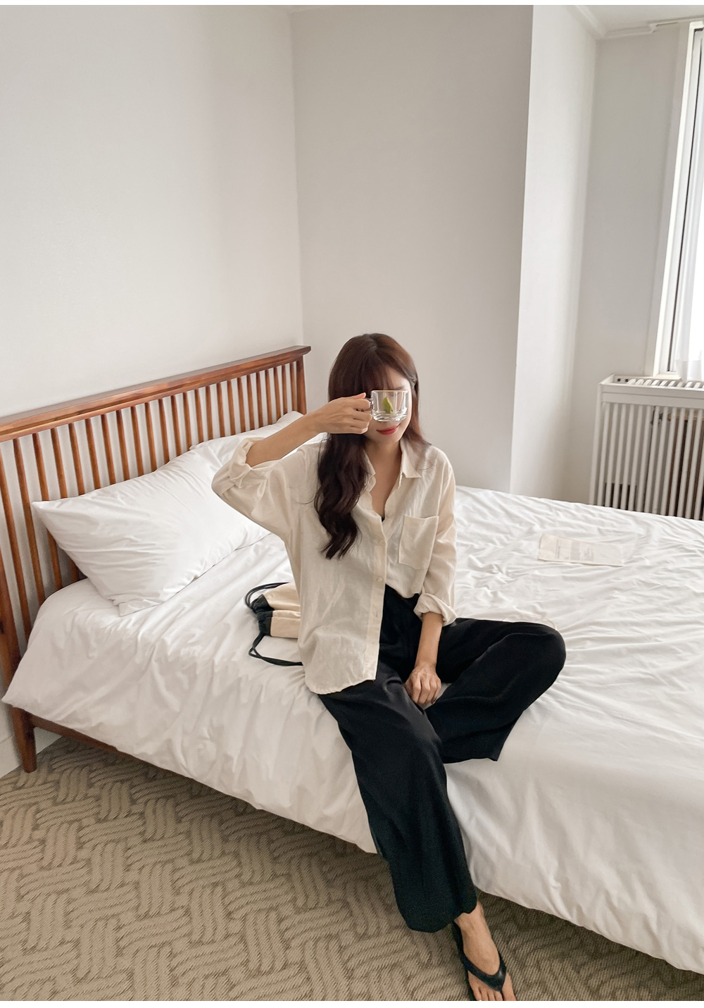 구김도 거의 없어 깔끔하게 차르르 가볍게 입기 좋아요.