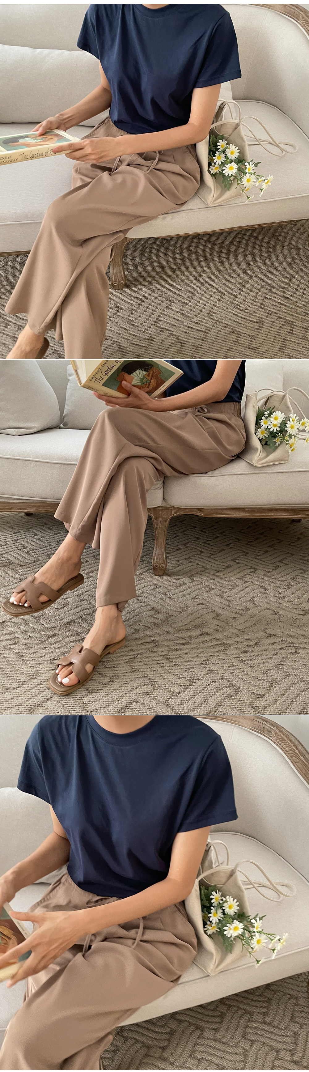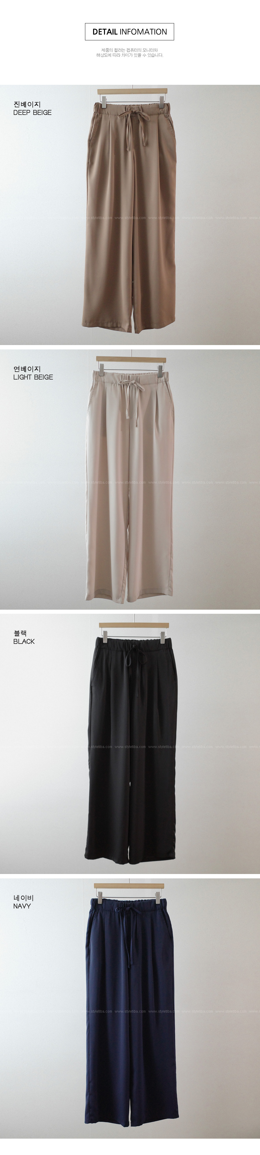 쿨링 스트링밴딩 와이드팬츠_S,M,L-4color, 드라이한 쿨링원단-모델도 반해버린 편안한 밴딩팬츠-리본끈 디테일로 스타일 up-살랑살랑 내츄럴 일자핏, 밴딩슬랙스 - 스타일티바