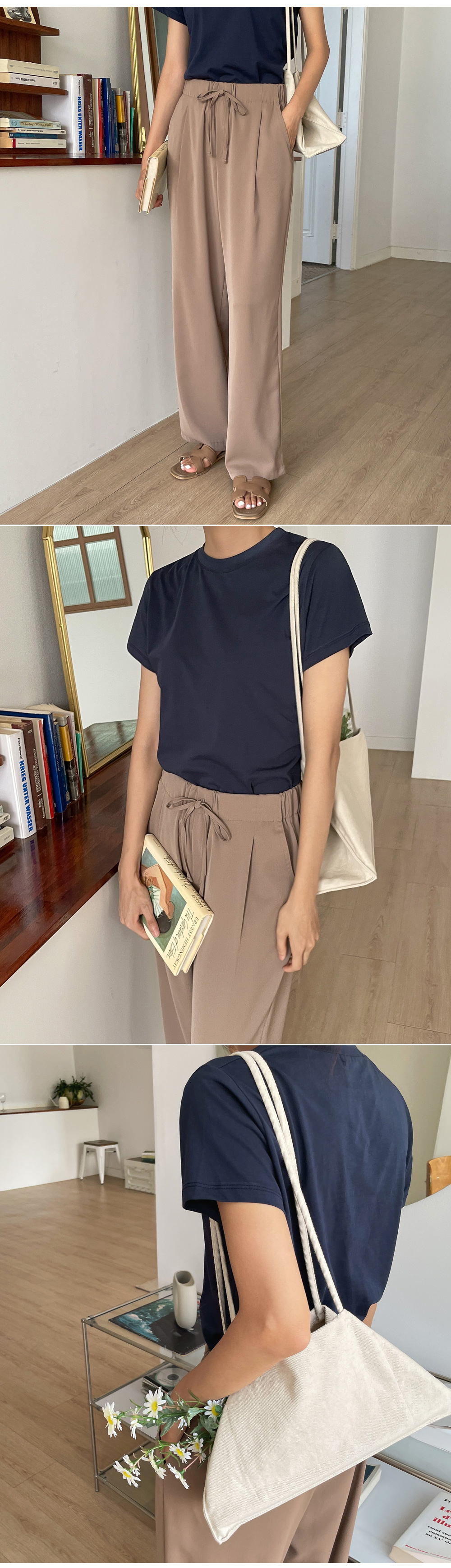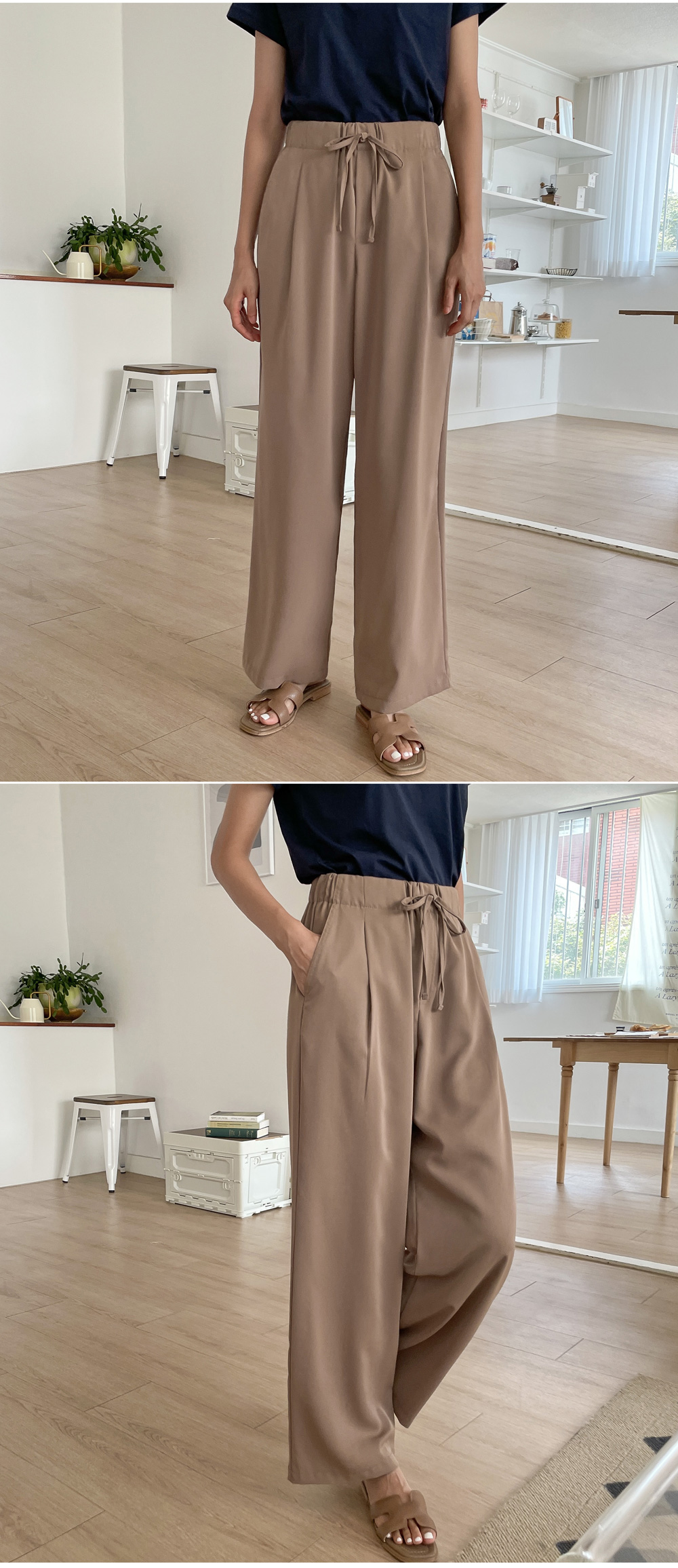 Cooling string banding wide pants_S, M, L-4color, dry cooling fabric-Comfortable banding pants that even models fall in love with-Style up with ribbon string detail-Salangsalang natural straight fit, banding slacks - Style Tiva