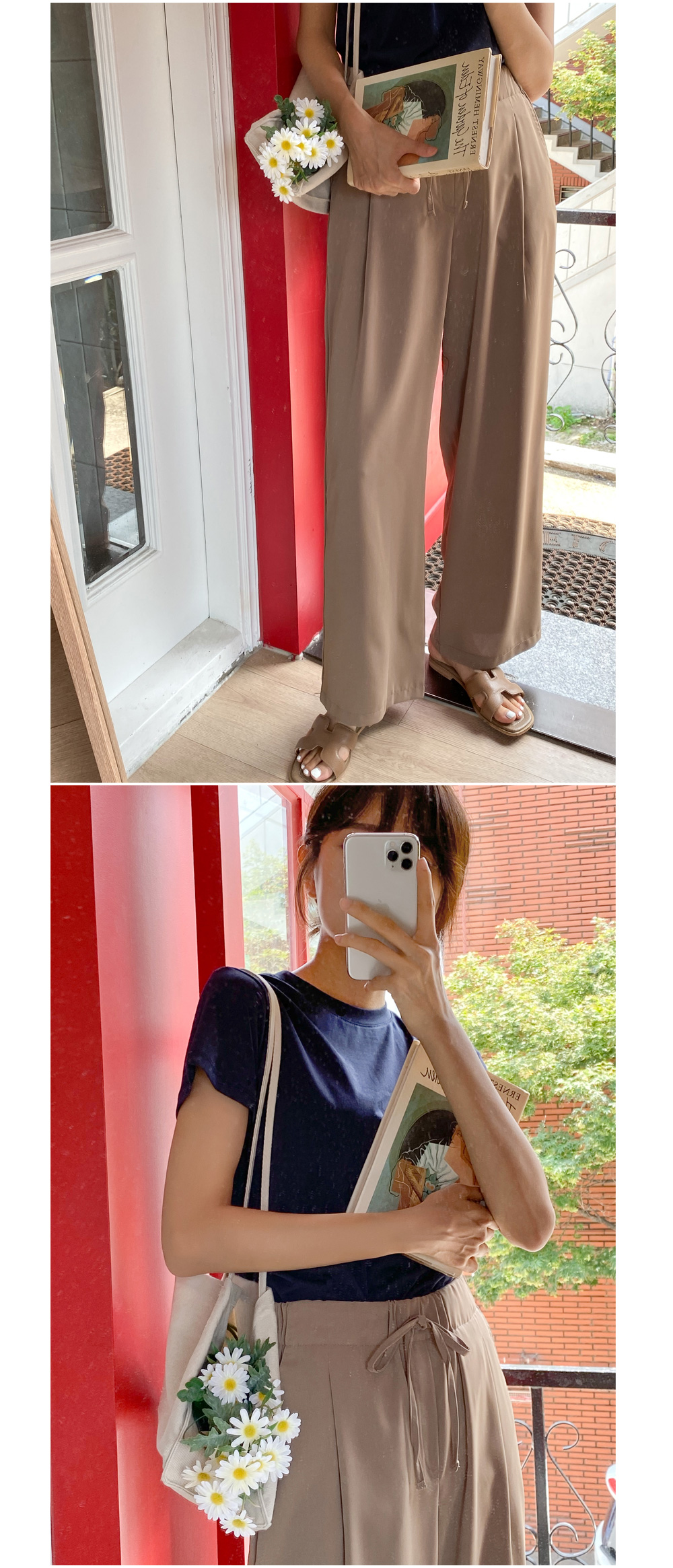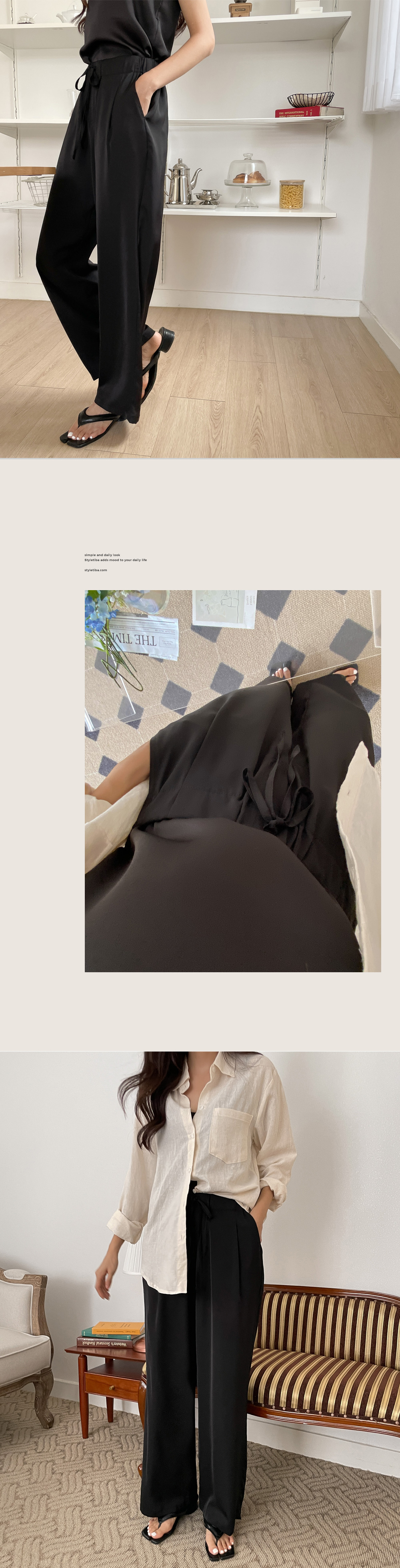 #쿨링 스트링밴딩 와이드팬츠