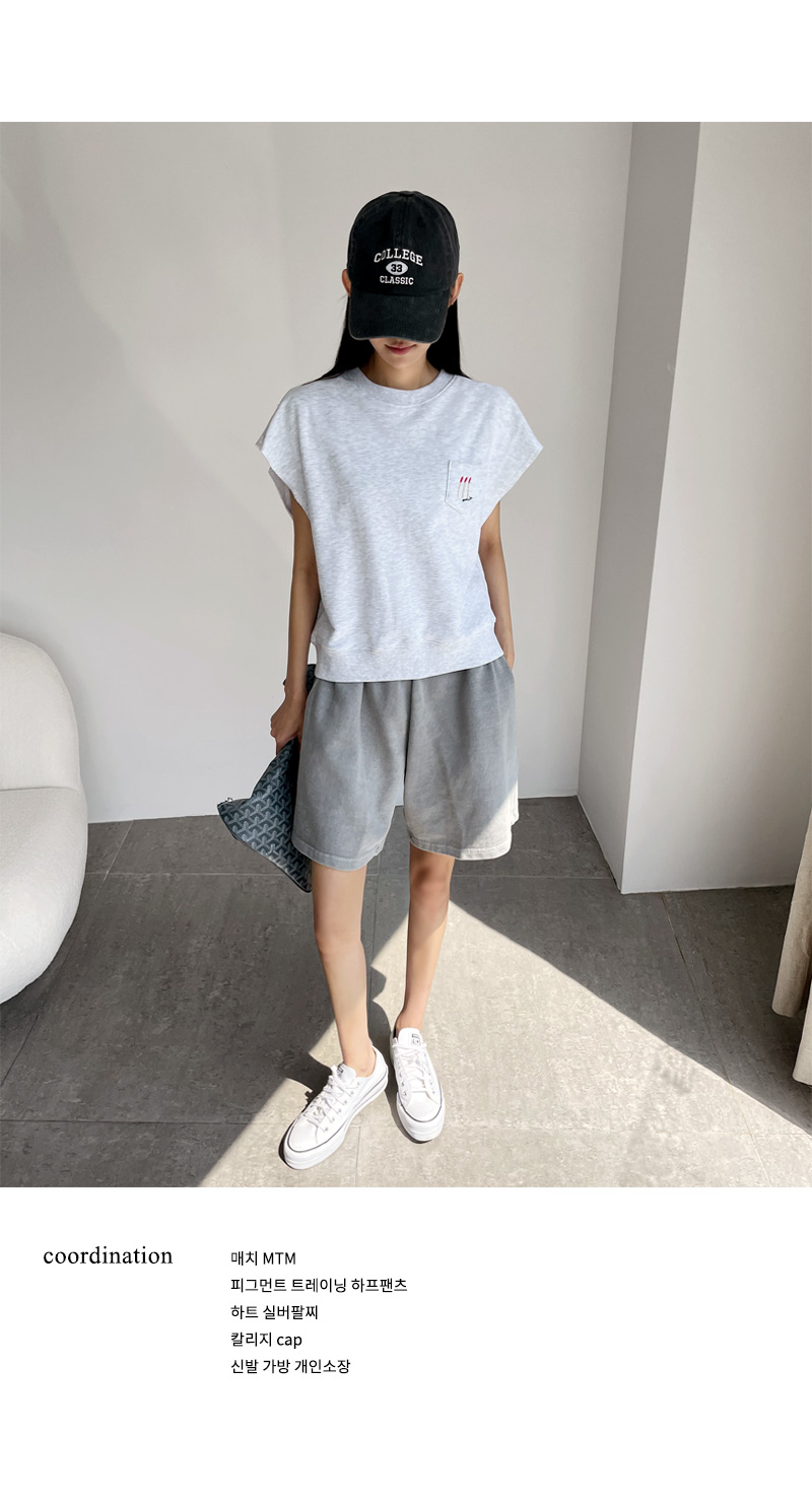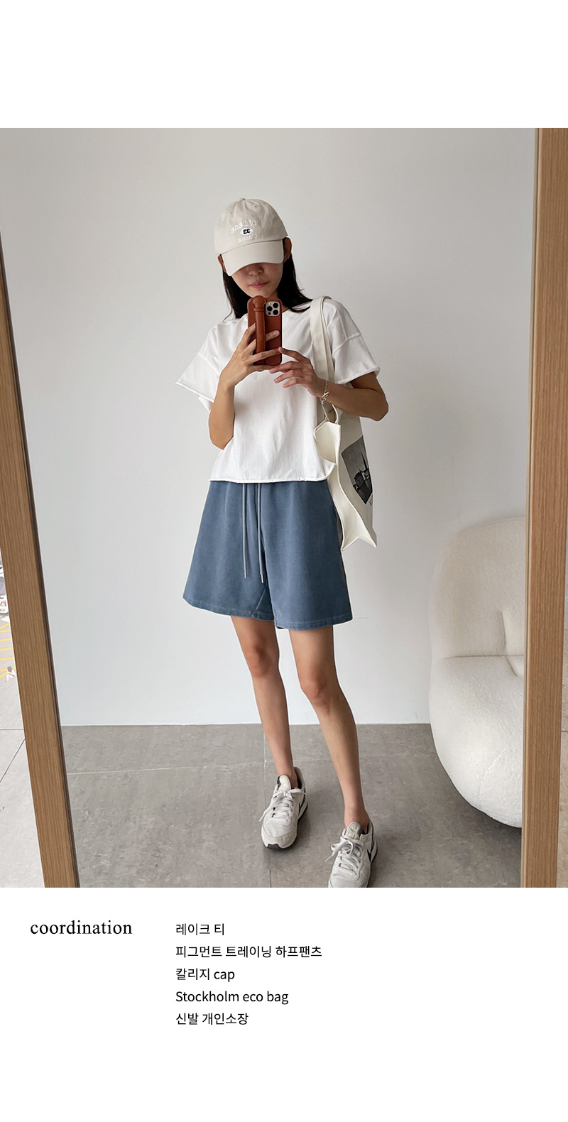 5부 기장감에 통이 여유있는 피그먼트 하프팬츠에요^^