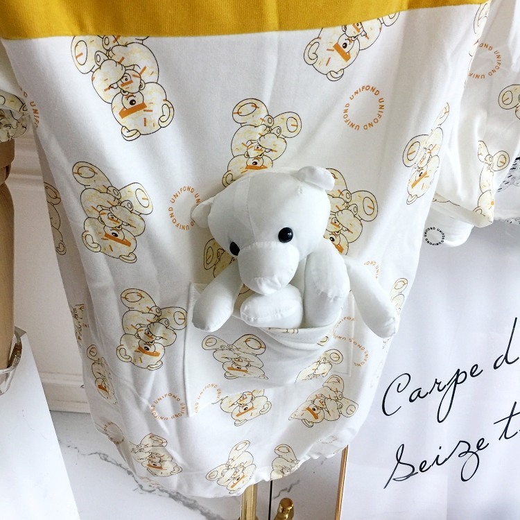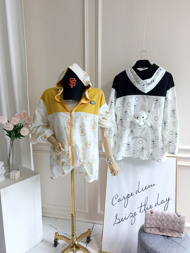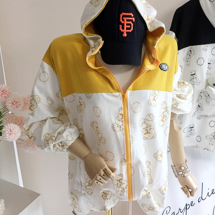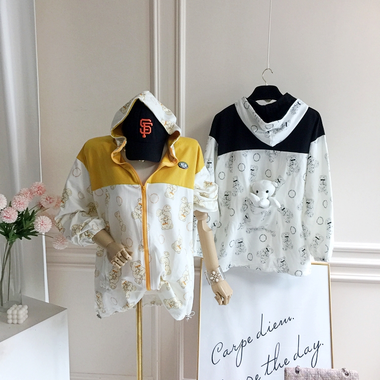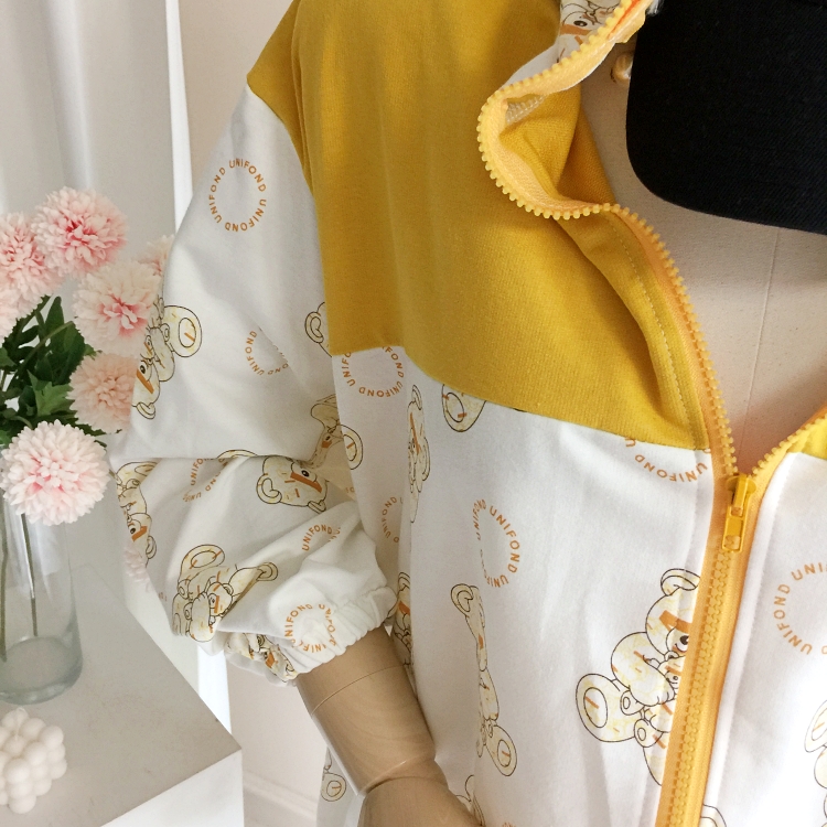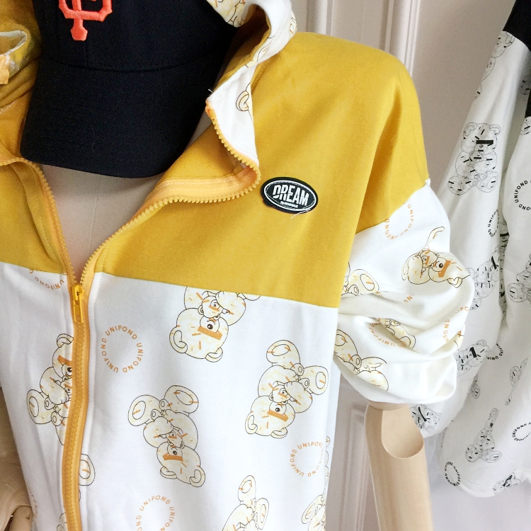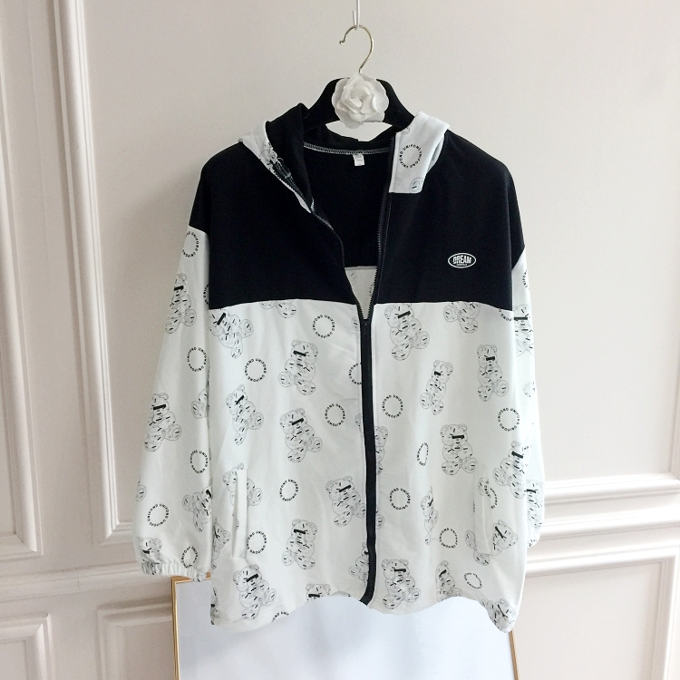 어부바 아기곰 패턴 오버핏 후드 점퍼