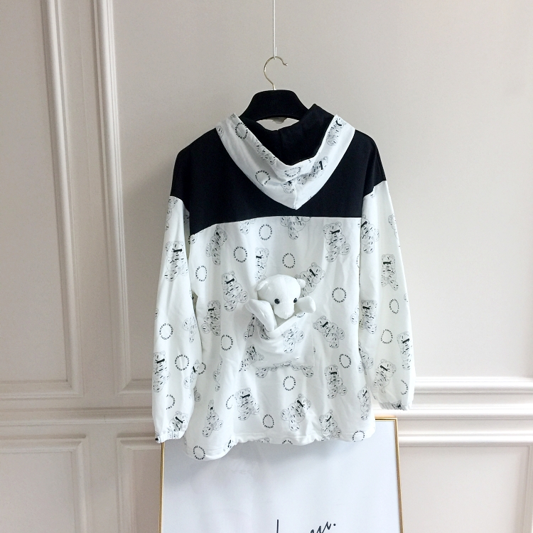 Piggyback Bear Pattern Overfit Hooded Jumper