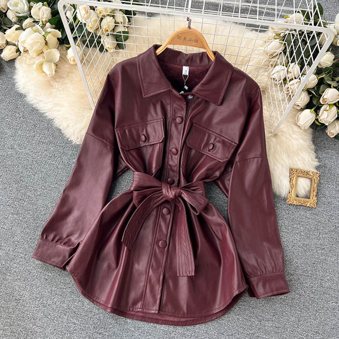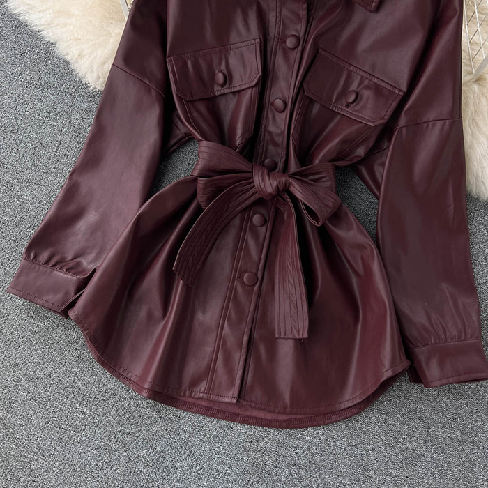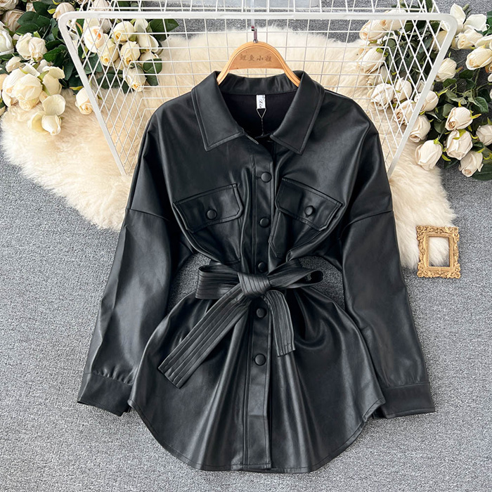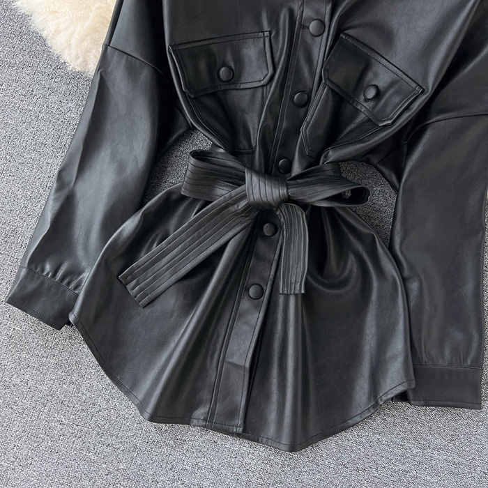 Oslyn Chic Leather Shirt Jacket