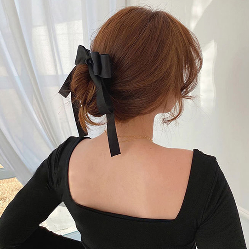 Jennie Black Drooping Ribbon Hairpin-Only, Black! Full of love- - Style Tiva