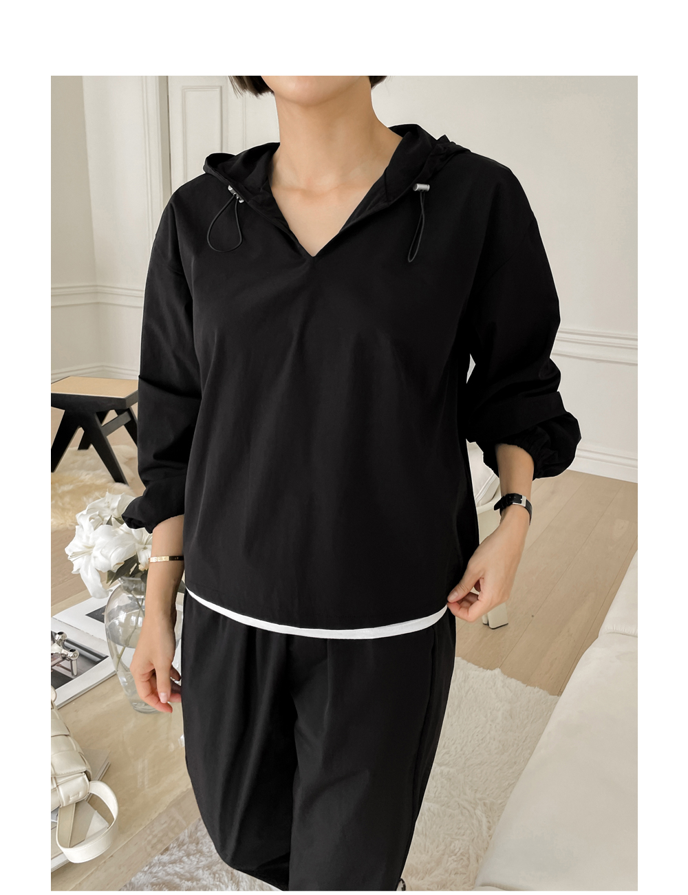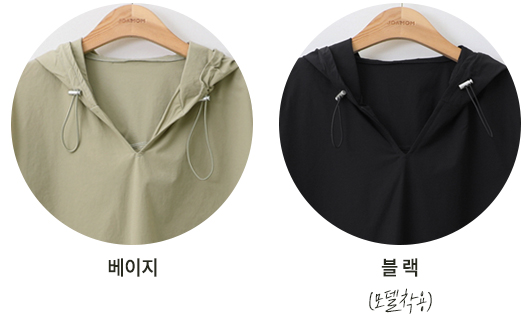 V넥 디자인에 후드가 있어
