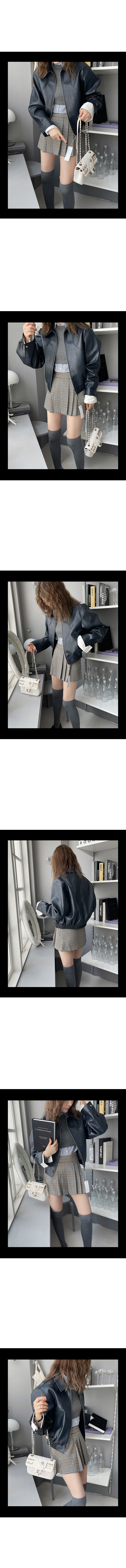 시크하고 모던한 블루종 점퍼입니다.탄탄하고 빈티지스러운 레더 원단에 베이직한 블루종 디자인으로 막 걸치기 좋아 자주 손이 가는 제품이에요. 어깨선이 내려온 아방한 듯한 핏으로 보다 여유 있게 입기 좋으며 소매에 스냅 버튼을 달아 디테일과 편안함을 더해줬어요.정면의 지퍼로 오픈 클로징이 가능하며 양 사이드 포켓으로 실용성을 드려요. 인조가죽소재는 가급적 세탁을 하지 않는 것이 가장 좋으며 오염된 곳만 부분적으로 닦아 관리해 주세요.불가피하게 전체세탁시에는 드라이클리닝을 권장해 드립니다.인조가죽(폴리우레탄등)류는 겹쳐서 보관하거나 닿아 있으면 이염이 되니 반드시 단독보관해 주시고 착용시에도 주의 부탁드립니다.