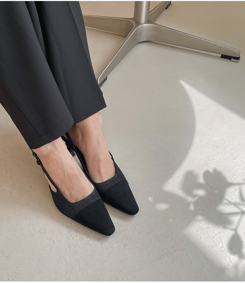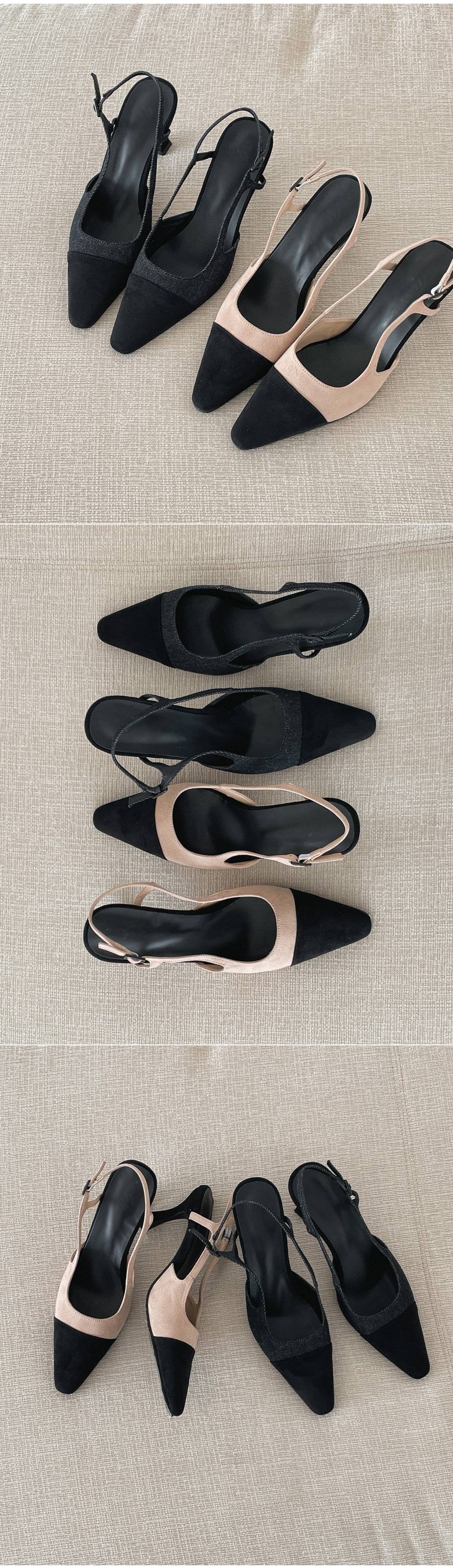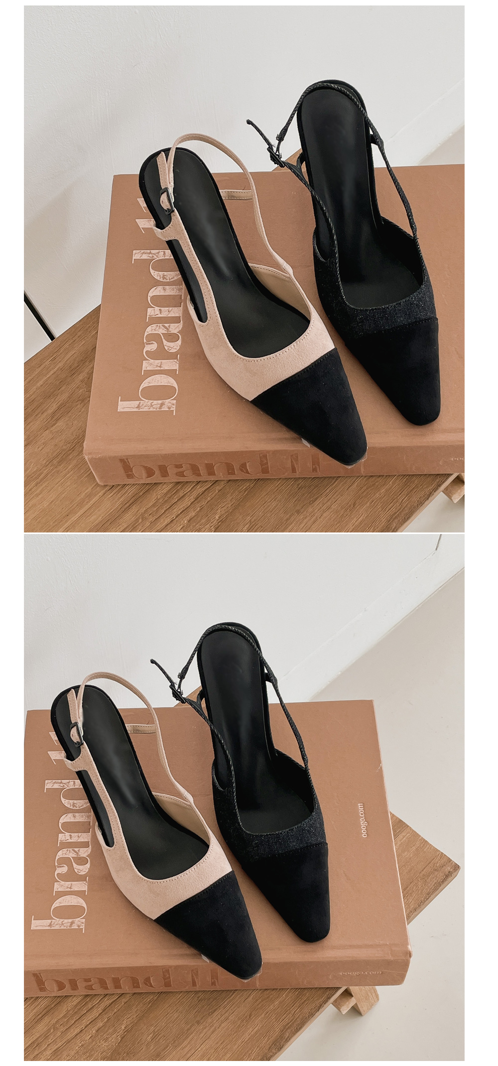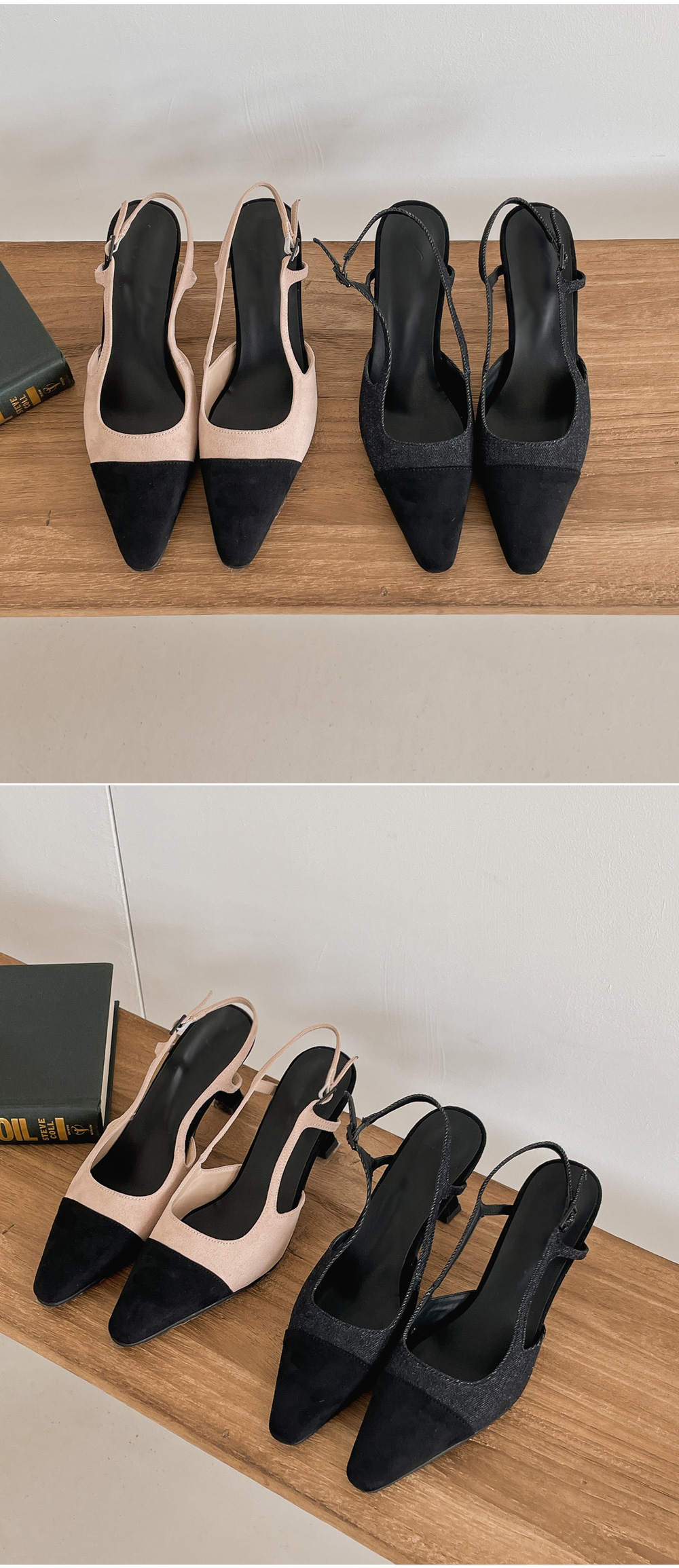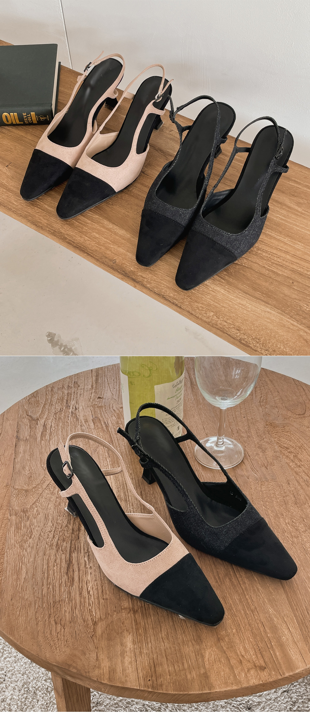 Thames color matching slingback heel - 2color, attractive color design - not high, comfortable middle heel - style tee