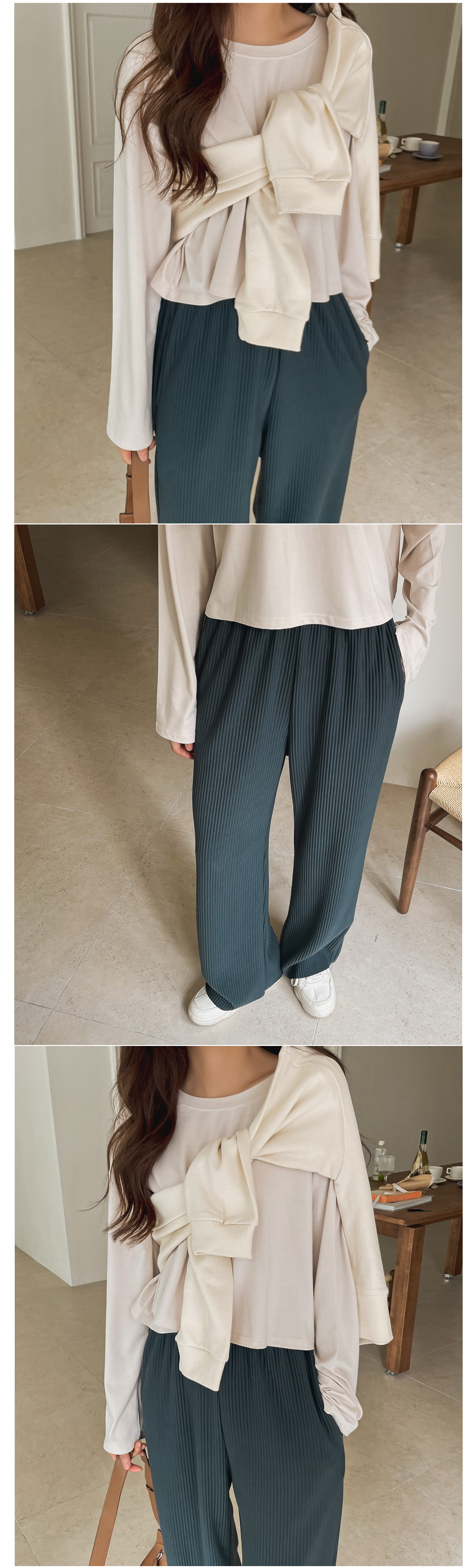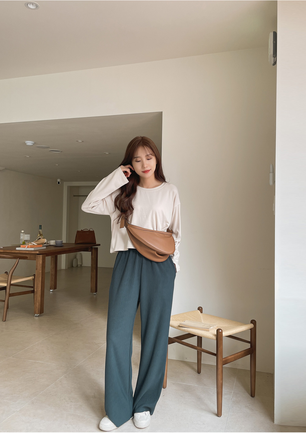 이르 라운드 스판크롭티-4color,촤르르 부드러운 촉감-깔끔,유니크한 크롭기장-매일입는 데일리템 - 스타일티바